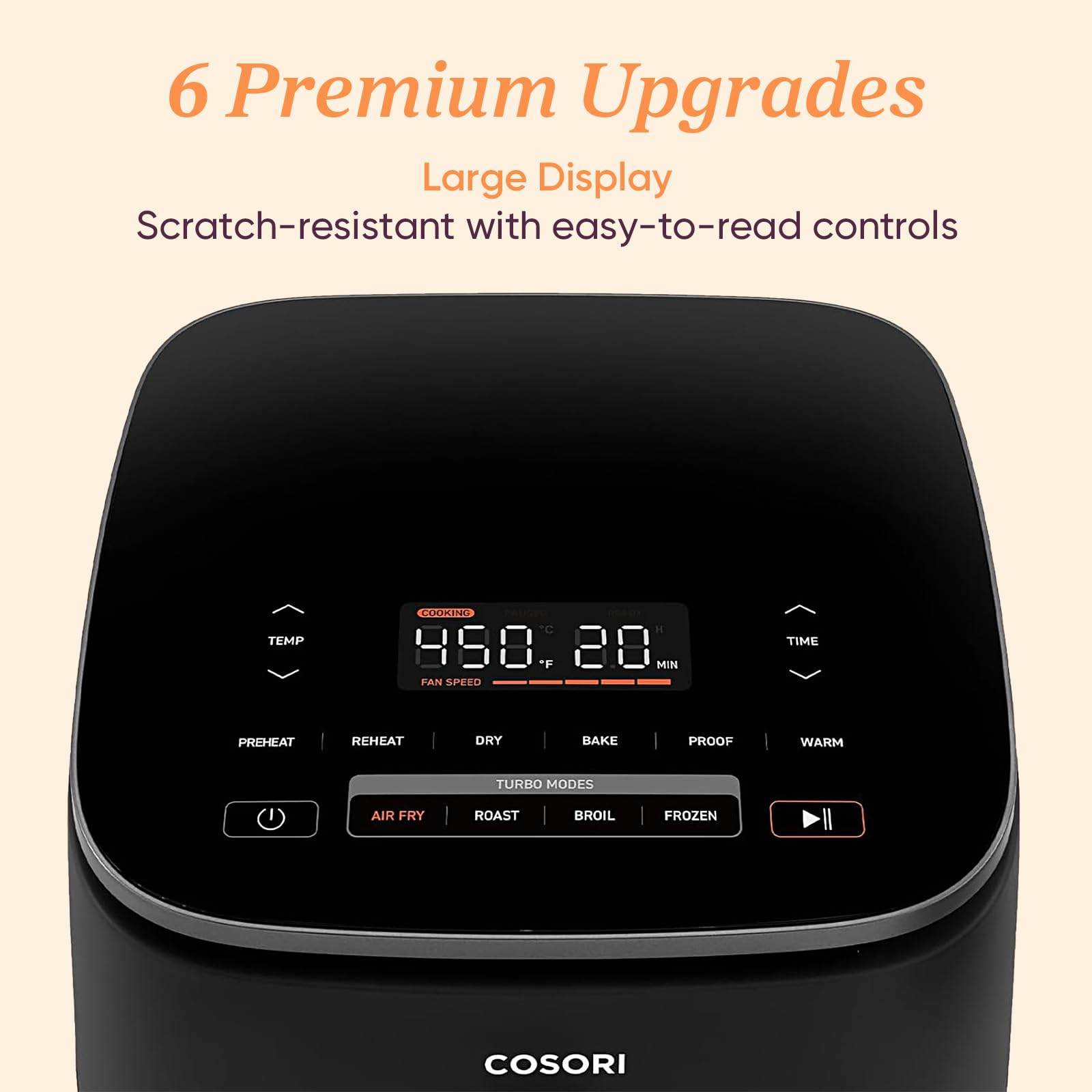 • 𝙃𝙚𝙖𝙩𝙞𝙣𝙜 𝙐𝙥𝙜𝙧𝙖𝙙𝙚: Cosori's unique 5-fan speed system and precise 90°– 450°F temperature control deliver evenly cooked dishes with perfect texture in every bite