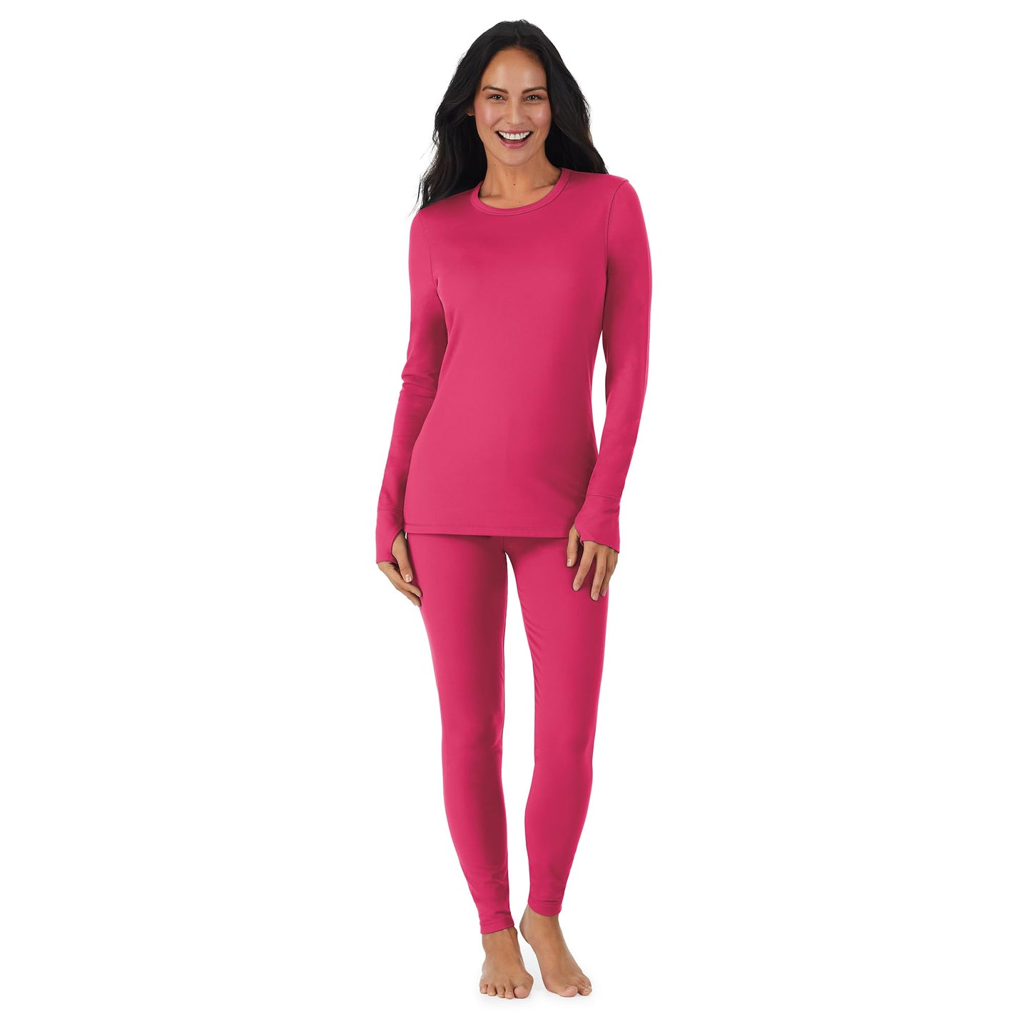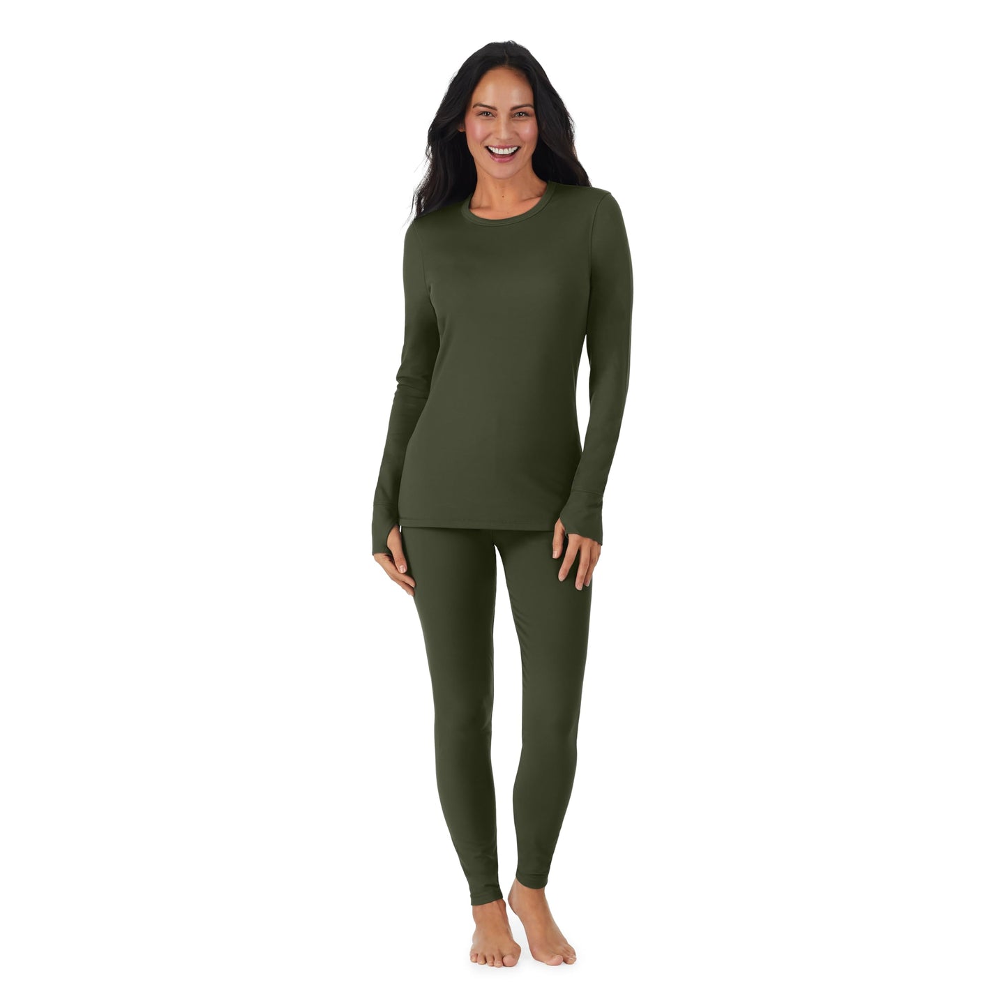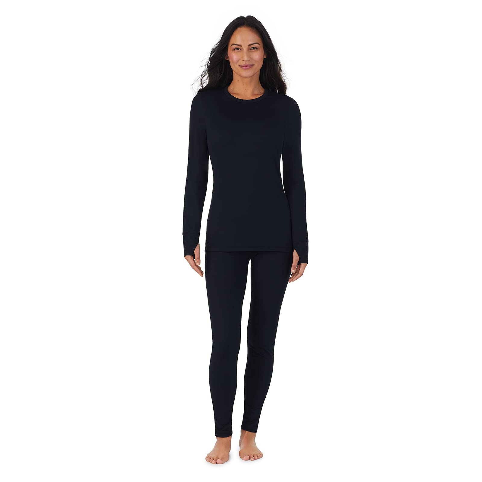 Cuddl Duds Womens Fleece Lined Thermal Base Layer Set – Long Sleeve Shirt & Leggings for Cold Weather – Lounge Set for Women