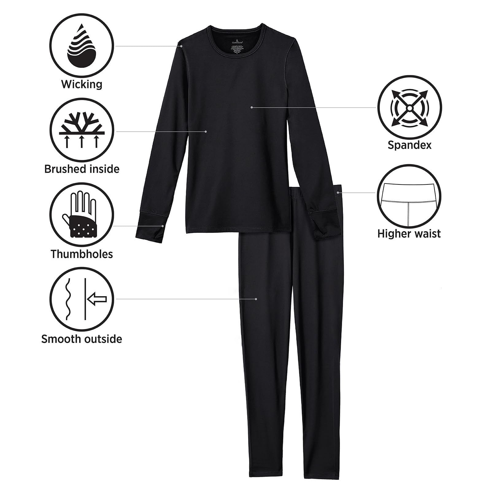 - HEAD-TO-TOE PROTECTION: Our thermal underwear has 50+ protection from harmful UV rays. With a thumbhole sleeve top, modern rise leggings, and tag-free label, look and feel great all day and night.
