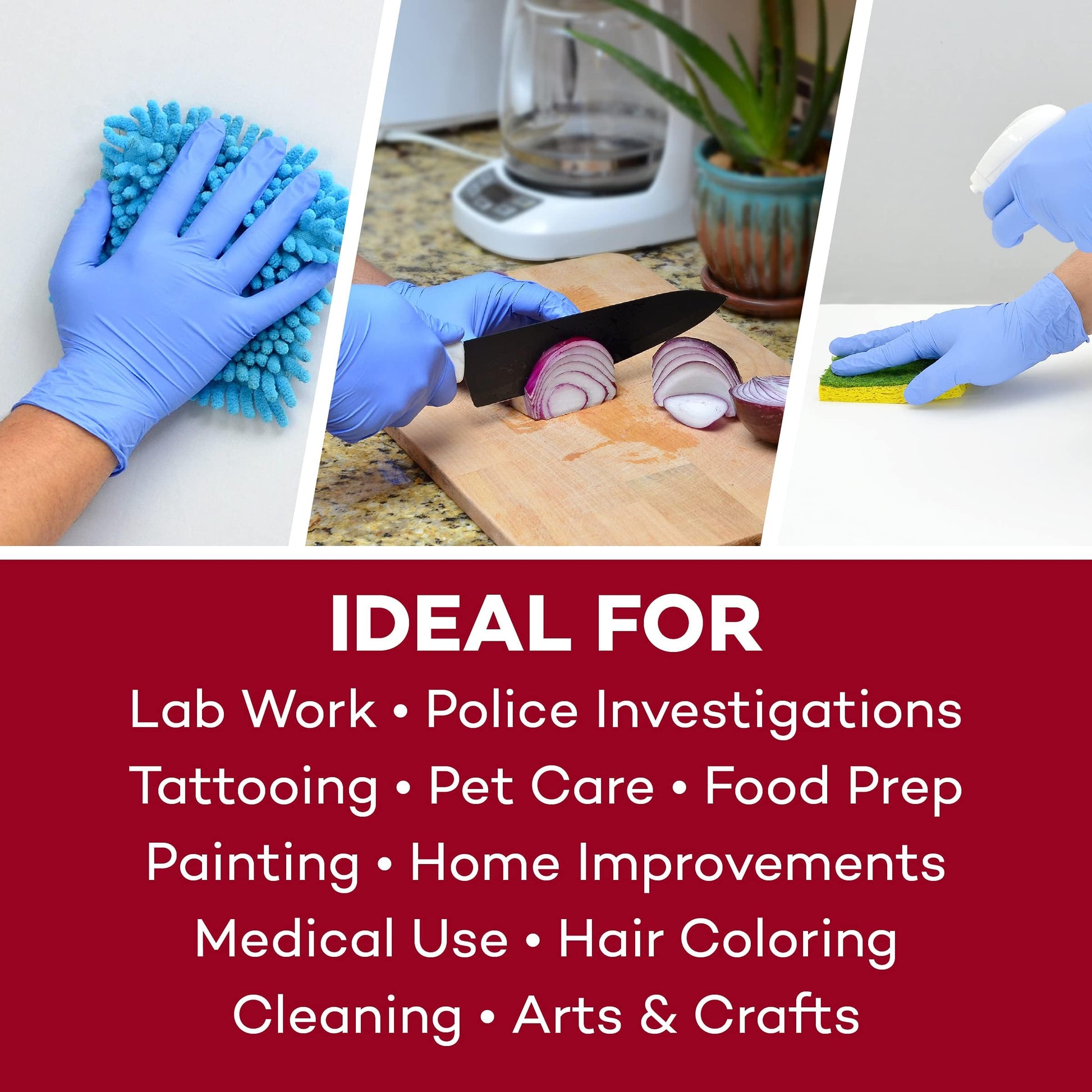 - Multi-Purpose Nitrile Gloves: Bulk nitrile gloves are ideal for dispensing medication, non-invasive physical examinations, lab work, hair coloring, tattooing, grocery shopping, painting, cleaning, pet care, home improvements, hobbies, and arts & crafts. These ambidextrous unisex exam gloves can be worn on either the right or left hand, and fit both men and women equally.