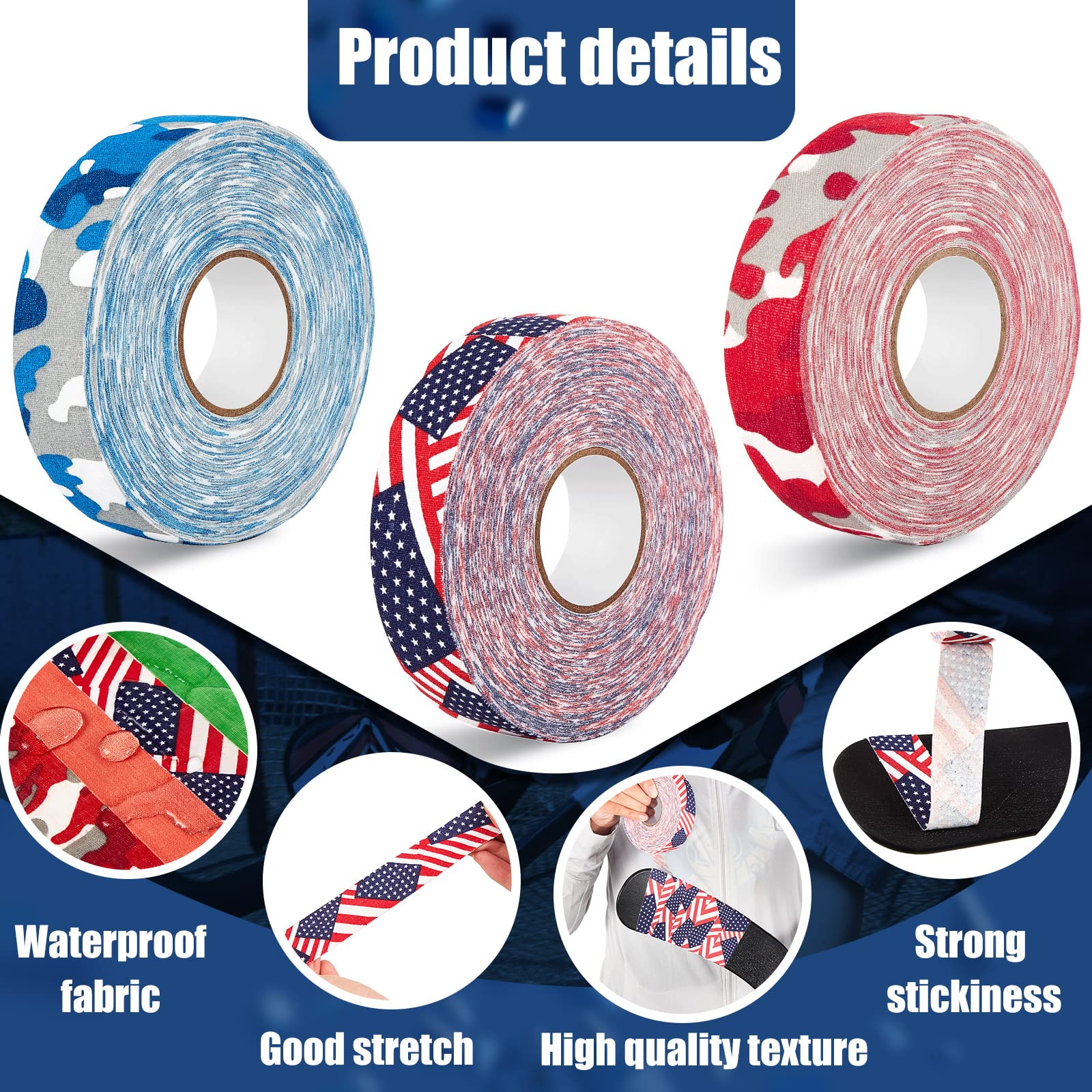 - Sufficient to Meet Your Needs: you will receive 6 rolls of hockey tapes in different colors, including black, green, orange, red camouflage, blue camouflage and USA flag colors. The sufficient quantity and various styles can meet your daily requirements
