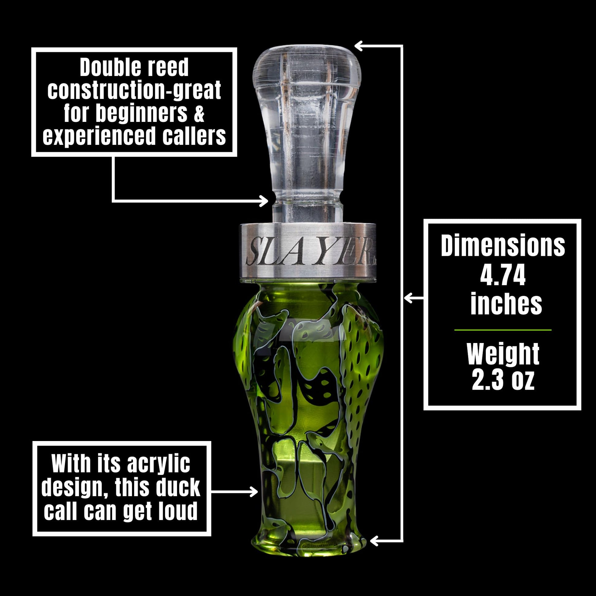 - The Drake Slayer duck call features double-reed construction — great for beginners and advanced duck callers.