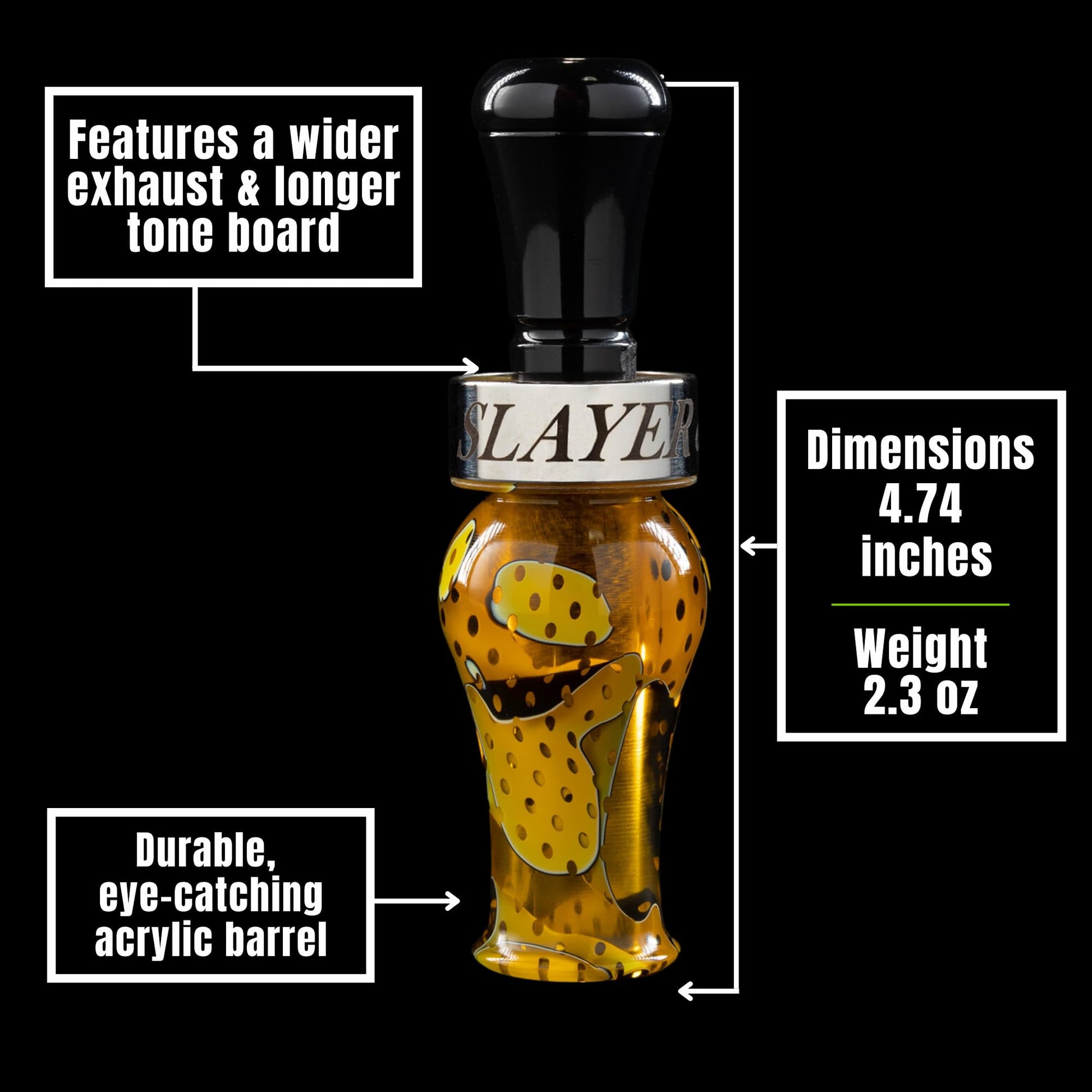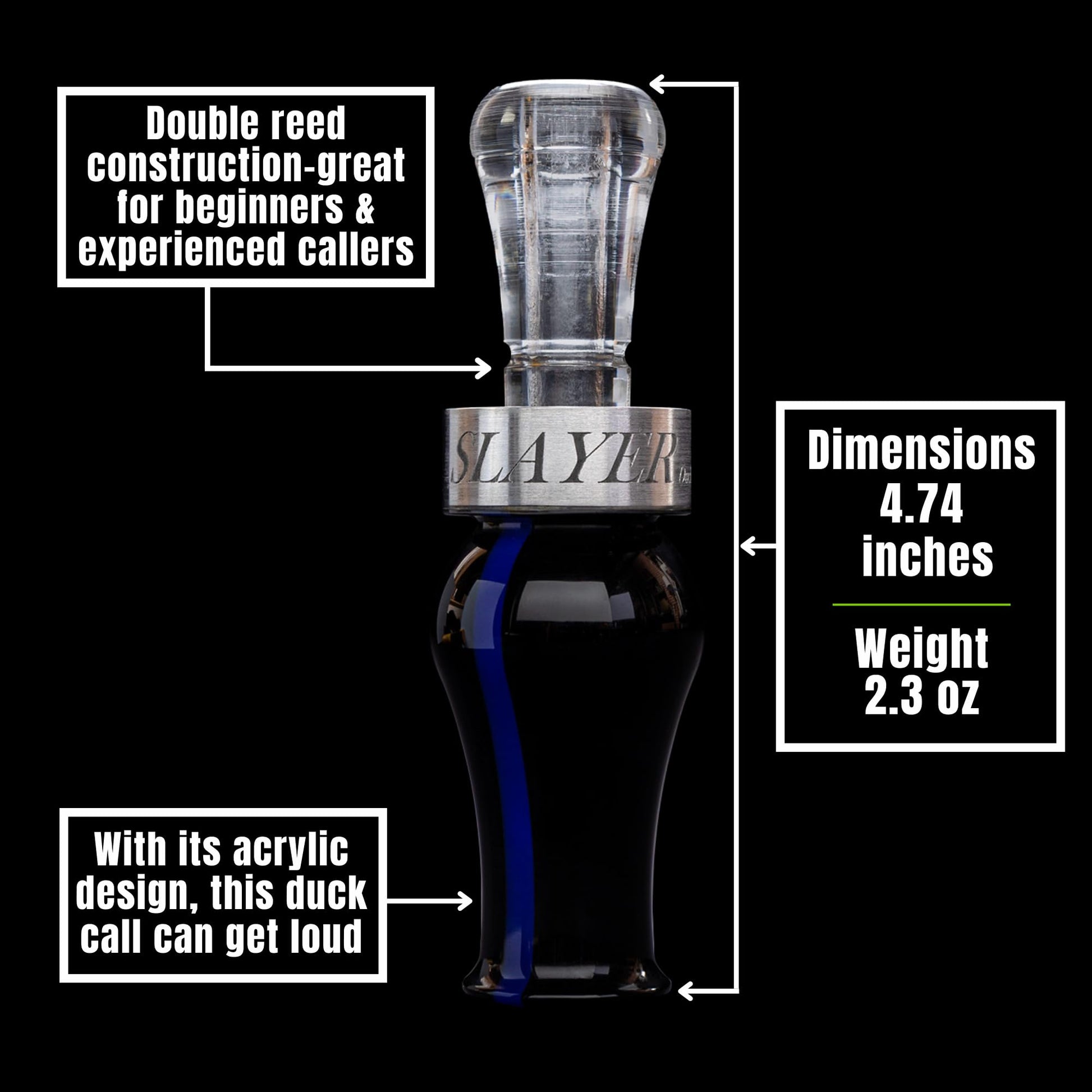 - The Drake Slayer's acrylic design means this duck call can get loud — this single reed features an acrylic barrel and insert.