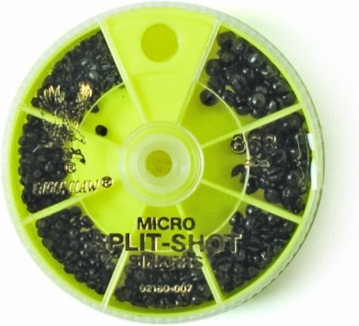 - EAGLE CLAW MICRO SPLIT-SHOT SINKER ASSORTMENT INCLUDES: 368 sinkers, enough to cover all your sinker needs and keep you fishing all day long.