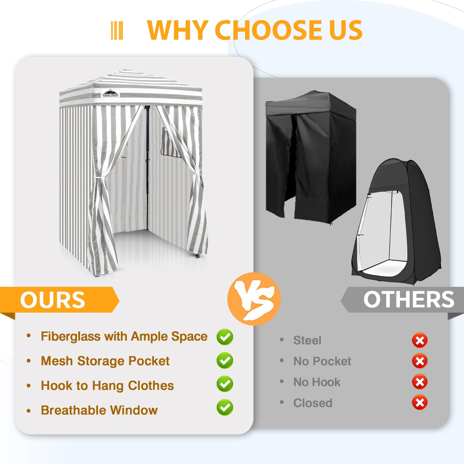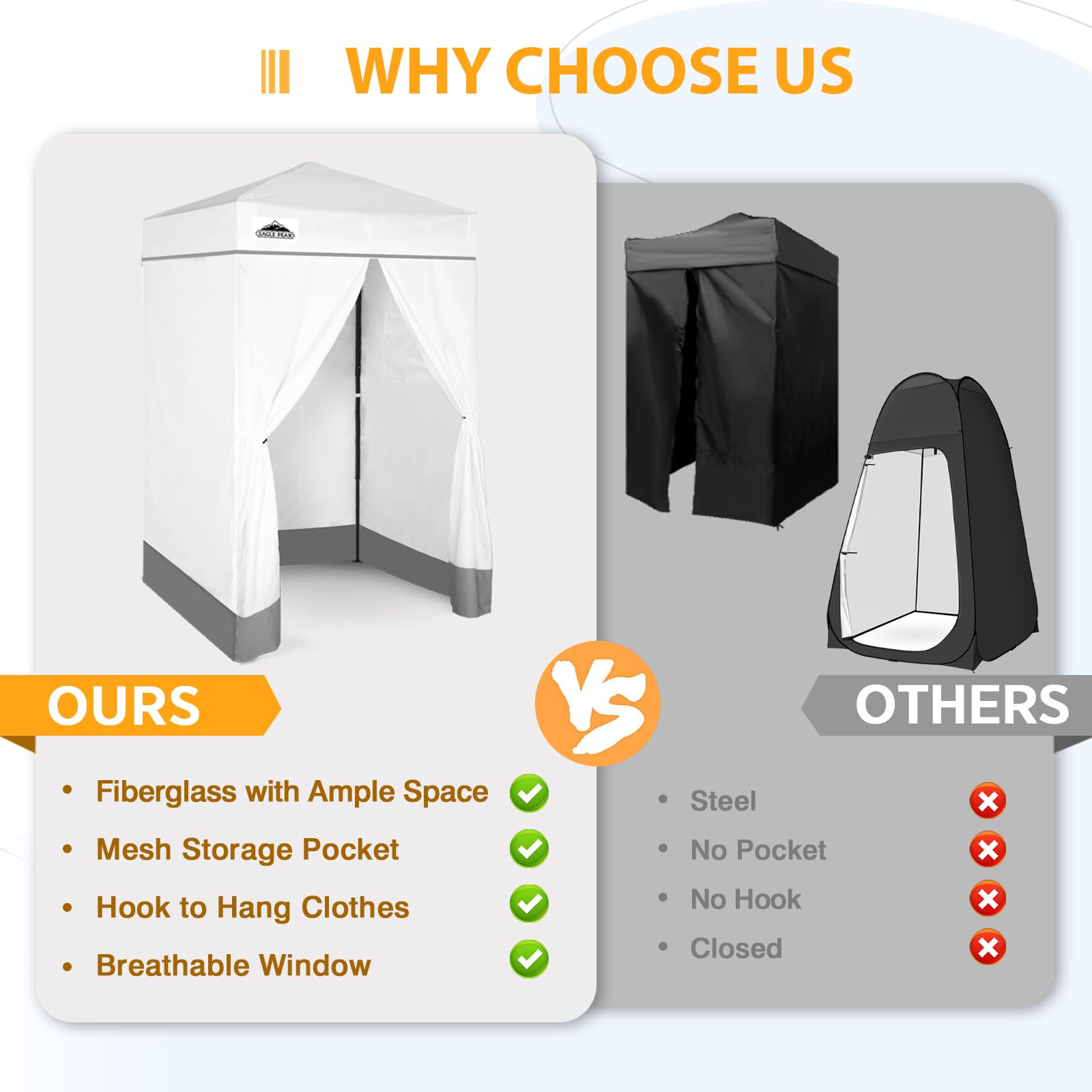 • INSTANT PRIVACY CHANGING ROOM: 4x4 changing tent for one or two people. Perfect as a changing room or sun cabana for outdoor activities: fashion show, photoshoot, camping, backyards, pool party or a showering tent, portable toilet shelter.