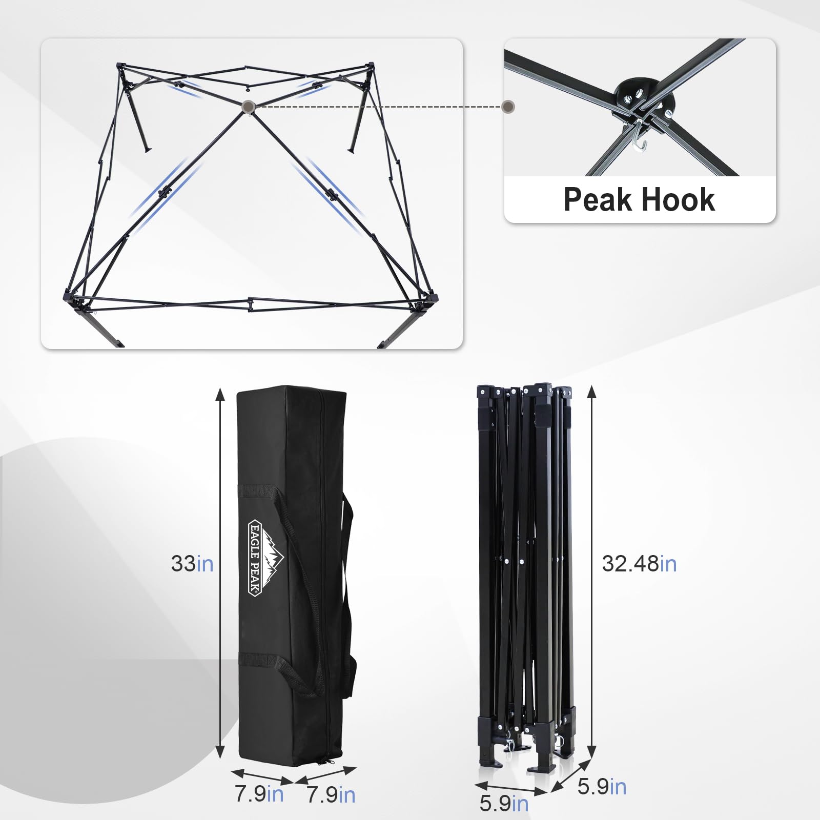 • EASY TO SETUP AND PUT AWAY: The EAGLE PEAK fiberglass FLEX ceiling system is more flexible and makes setup easy. The frame glides when opening and closing, enabling one person to easily open and close the canopy.