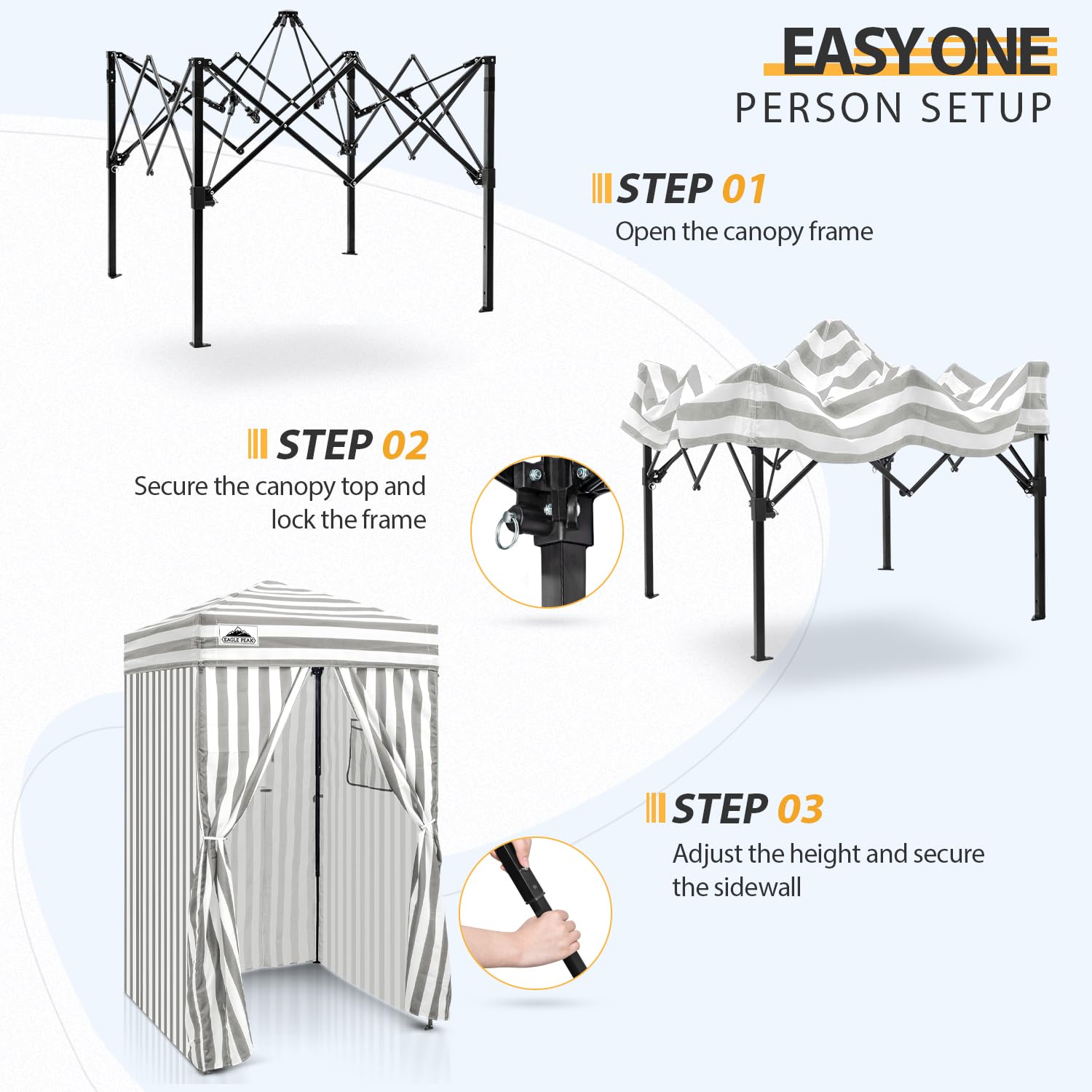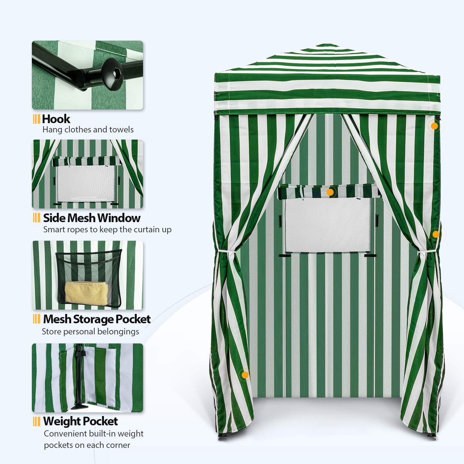 • LIGHTWEIGHT & ULTRA COMPACT: Changing Dressing Room has an ultra-compact, 3-part adjustable steel leg extension system. The Cabana is easy to store and carry, instantly folding down to just under 3 feet tall, 6.30x6.30x32.28in, 16x16x82 cm.
