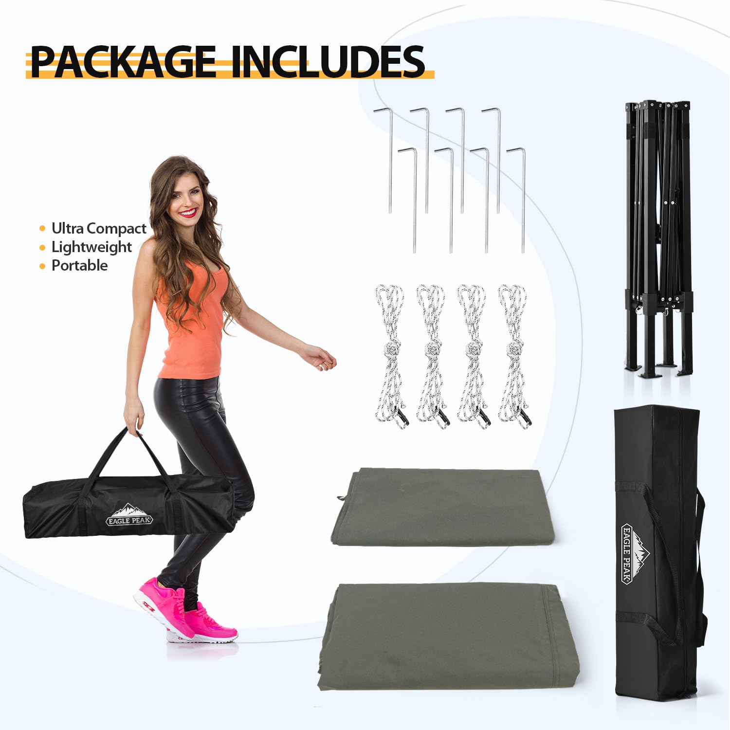 • EAGLE PEAK PROMISE: EAGLE PEAK offers a 1-year limited after sale protection from the original date of purchase. Unlike many other canopy manufacturers, EAGLE PEAK offers this for our frames, canopies and bags! If you have any other questions, please contact our professional service team.