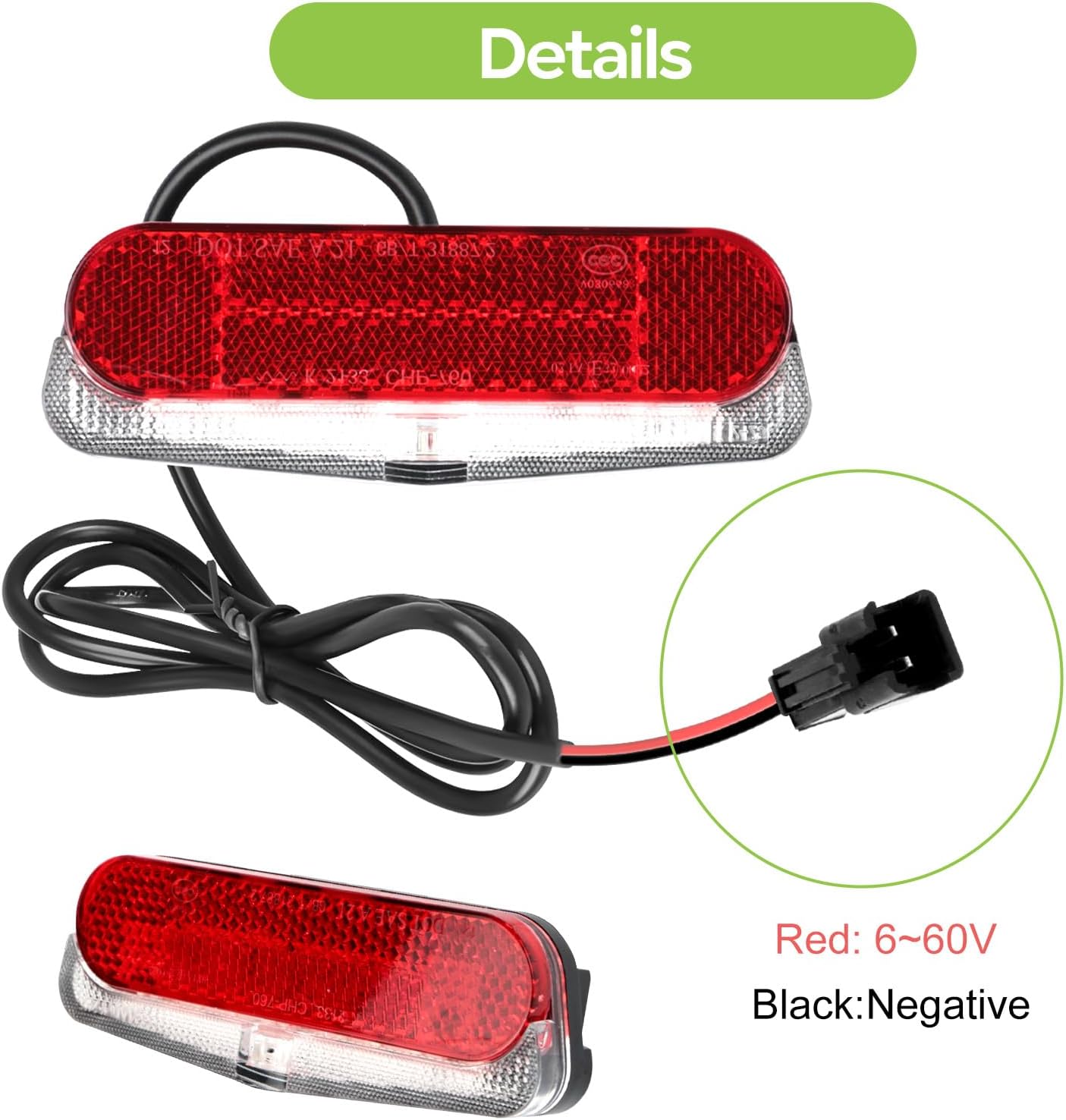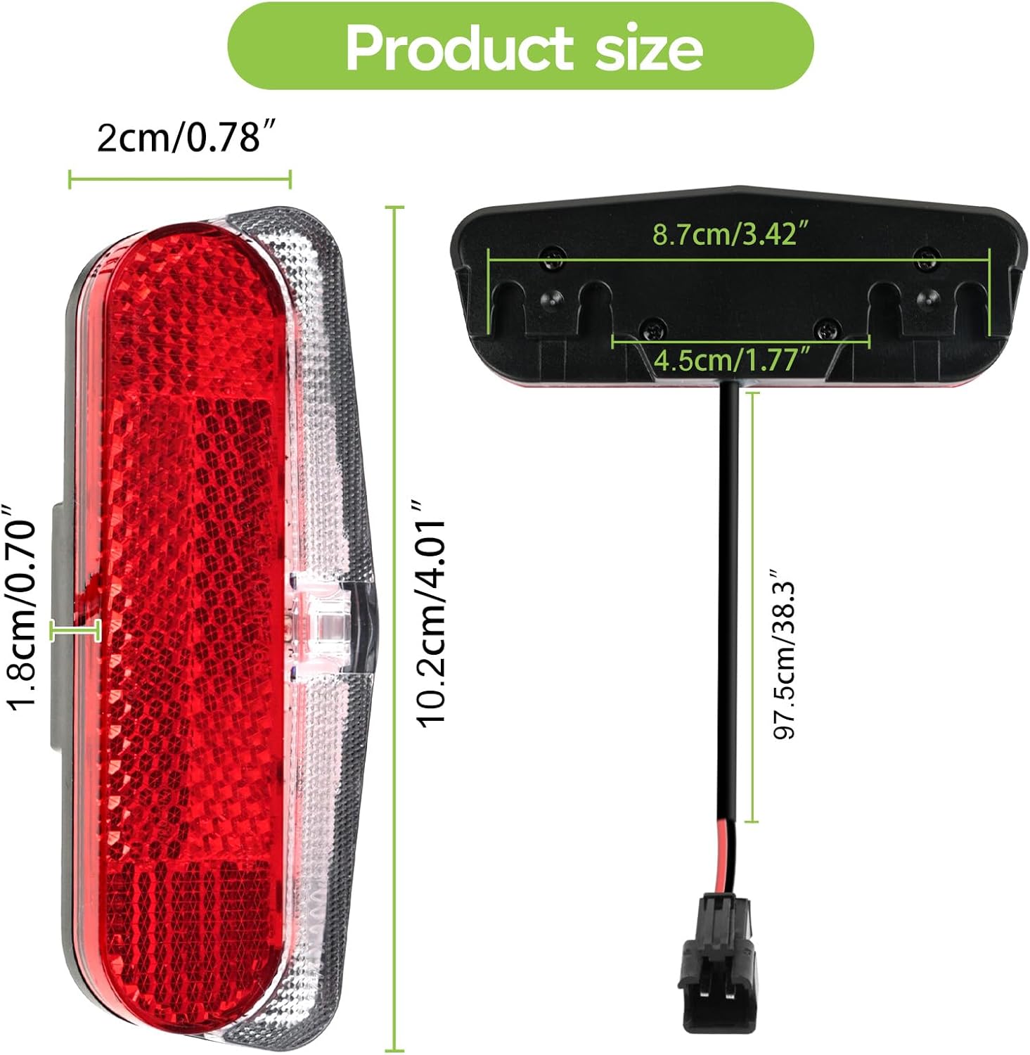 Ebike Rear Tail Light,6V-60V LED Warning Light High Brightness Tail Brake Light with Waterproof SM Connector&38.3" Cable Length Electric Bike Accessories for BAFANG Mid Motor and hub Motor