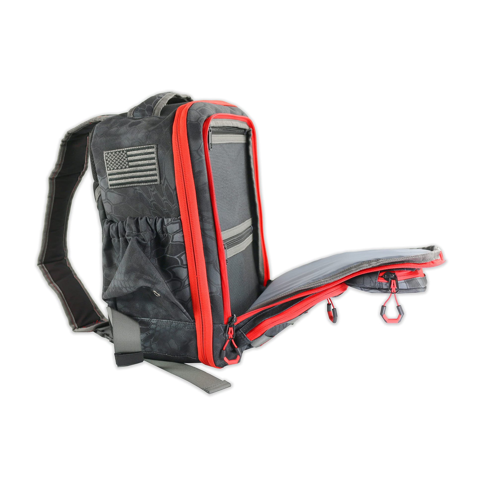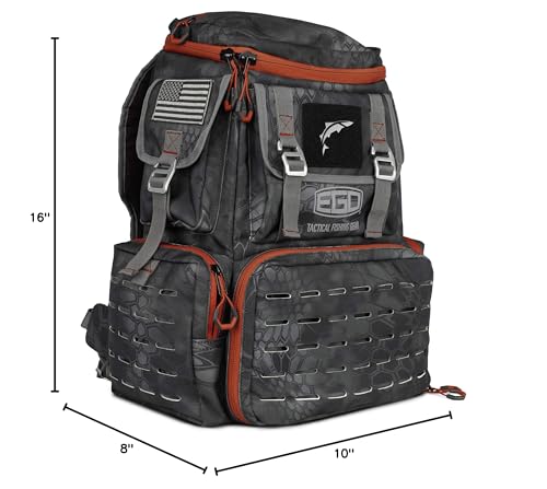 - TACTICAL DESIGN: The EGO Kryptek Tactical Tackle Box Backpack features laser-cut molle loops for external tool management, ensuring you have quick access to your fishing gear. With Kryptek camo technology and a tactical velcro patch area, this fishing backpack offers both functionality and an aggressive look.