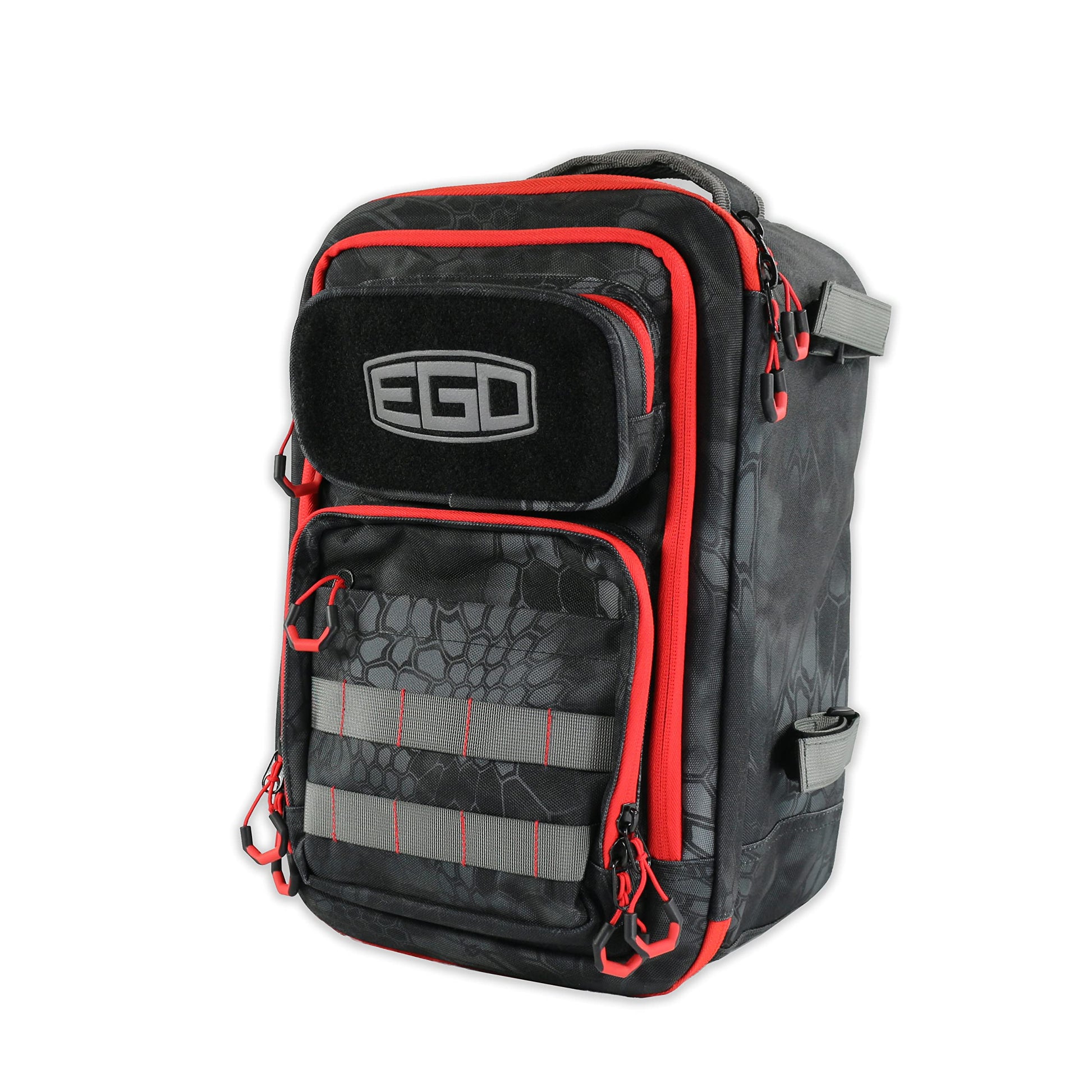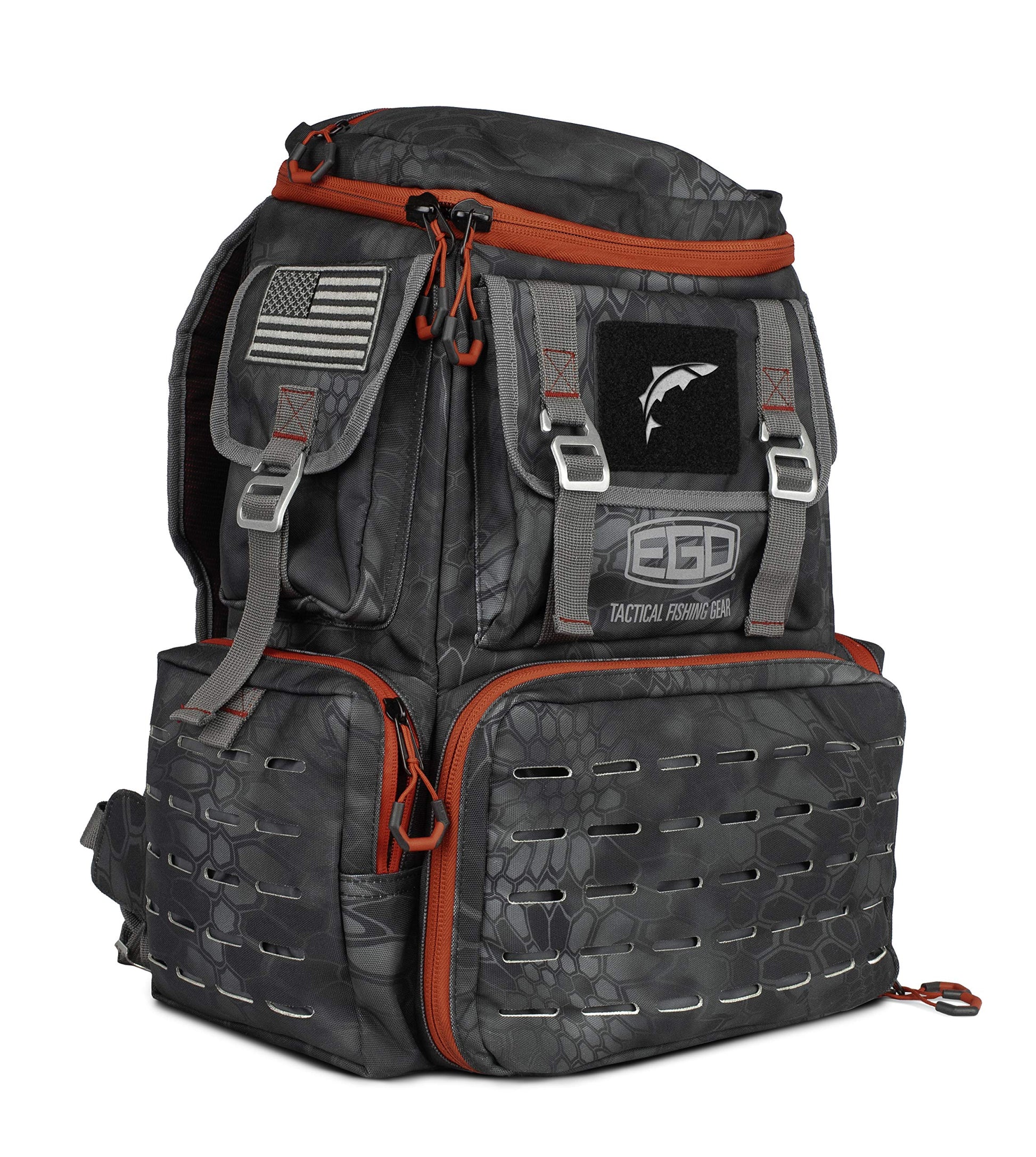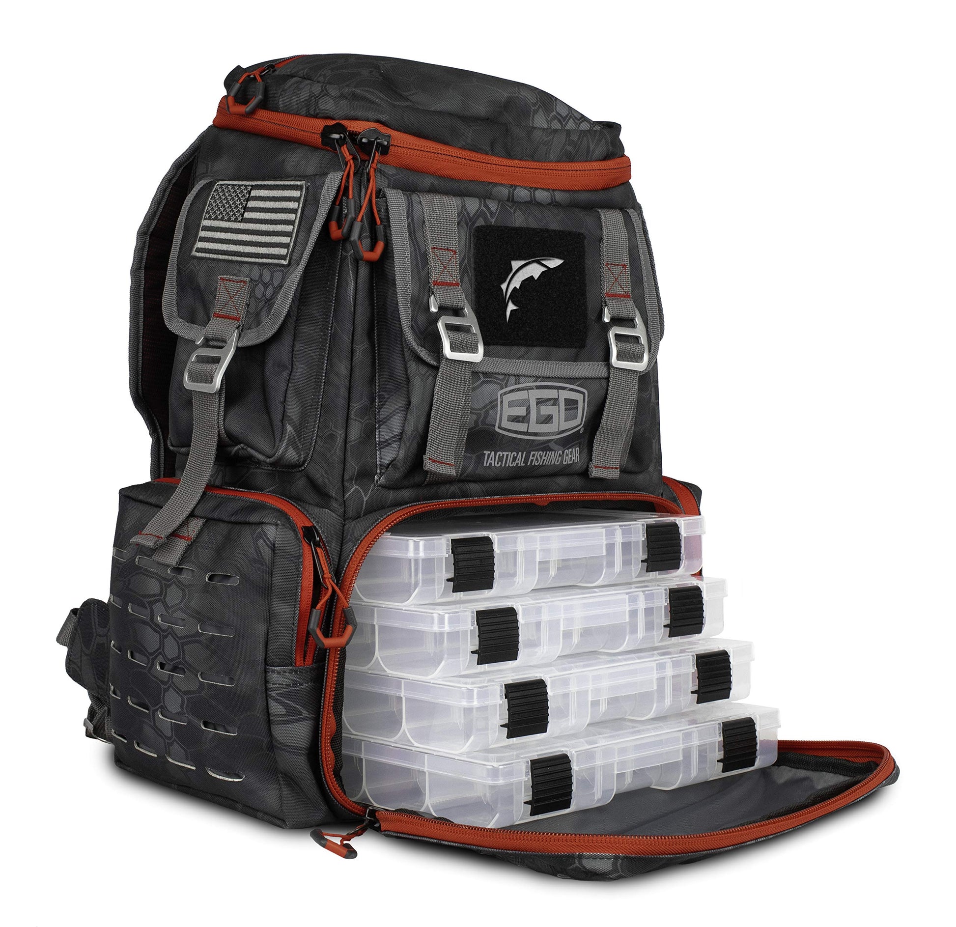 - AMPLE STORAGE CAPACITY: EGO Kryptek Tactical Tackle Box Backpack provides ample storage capacity for all your fishing gear. The included four 10" x 7" clear tackle trays and multiple storage pockets ensure that your fishing tackle and tools are organized and easily accessible, making it the best tackle box backpack for any angler.