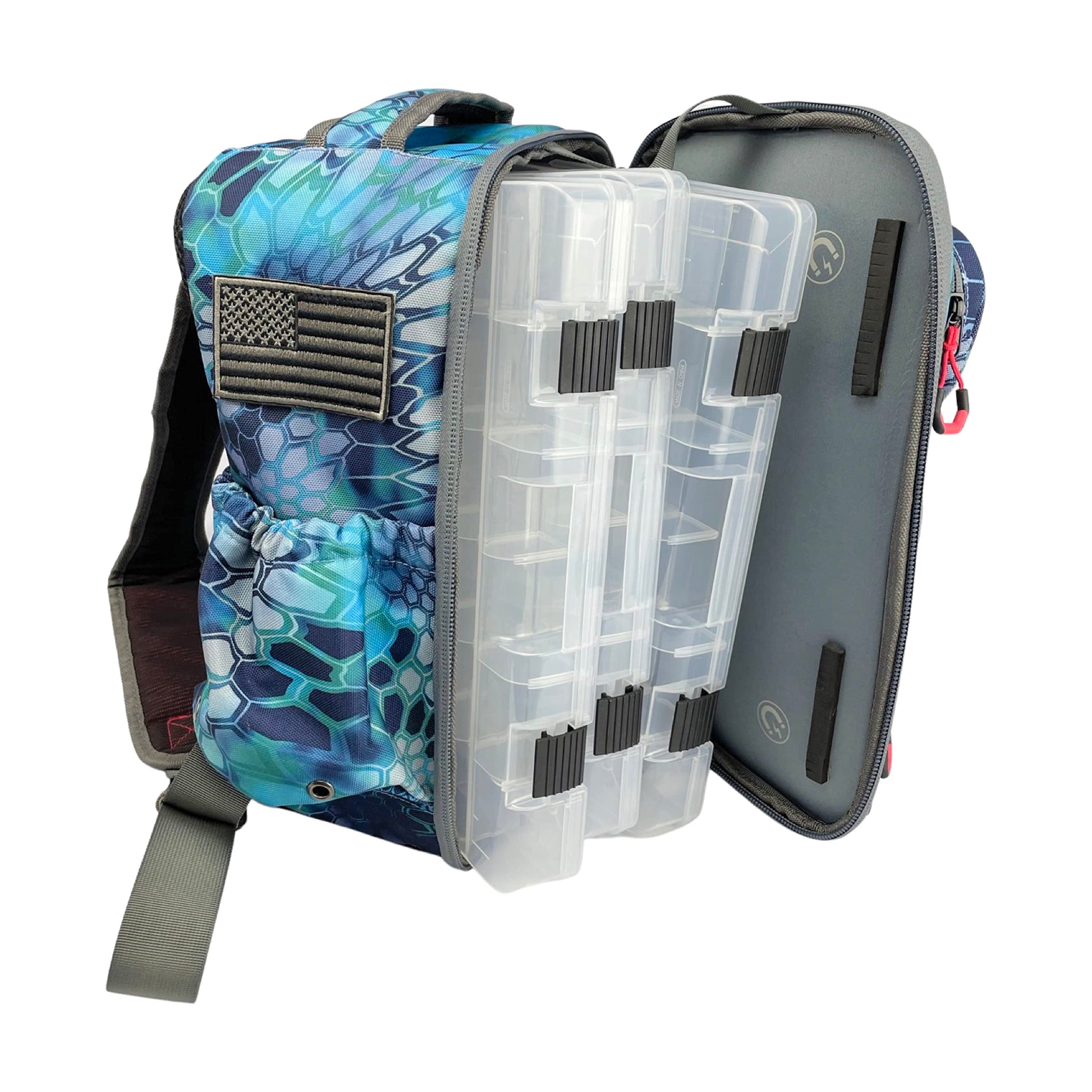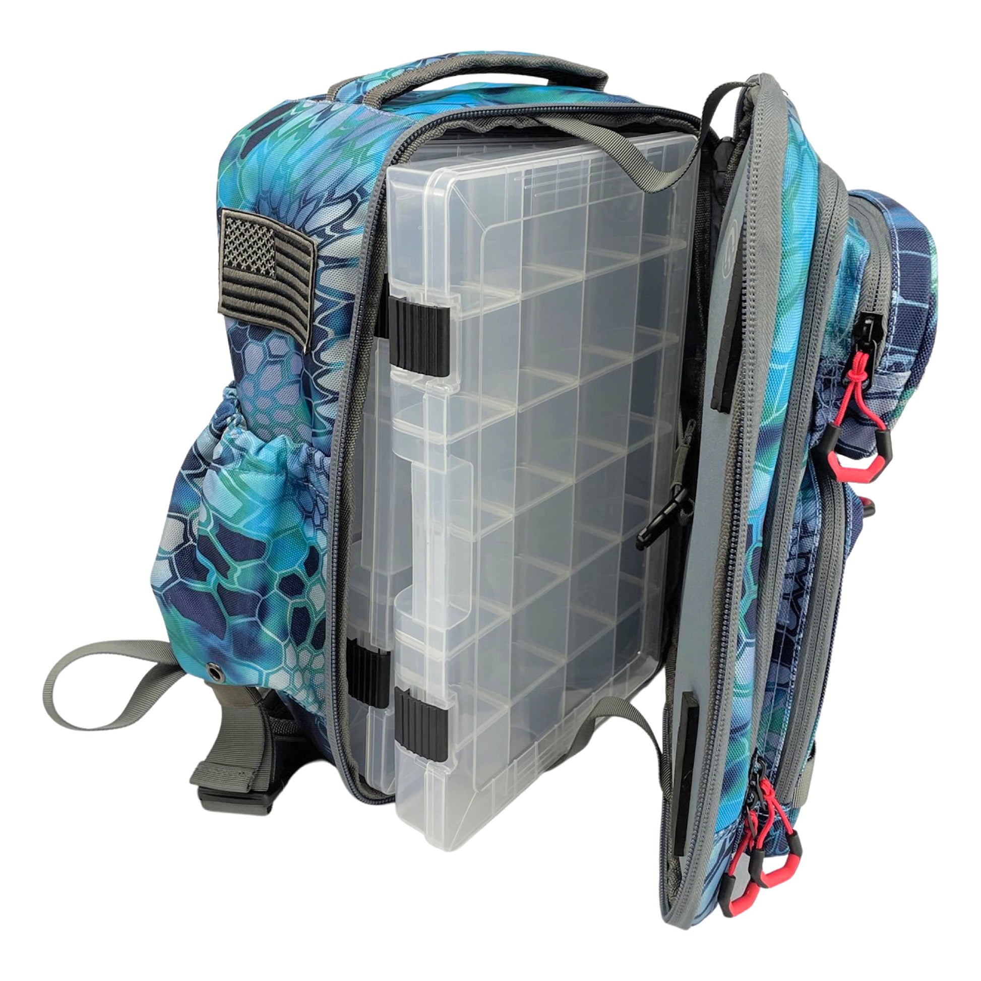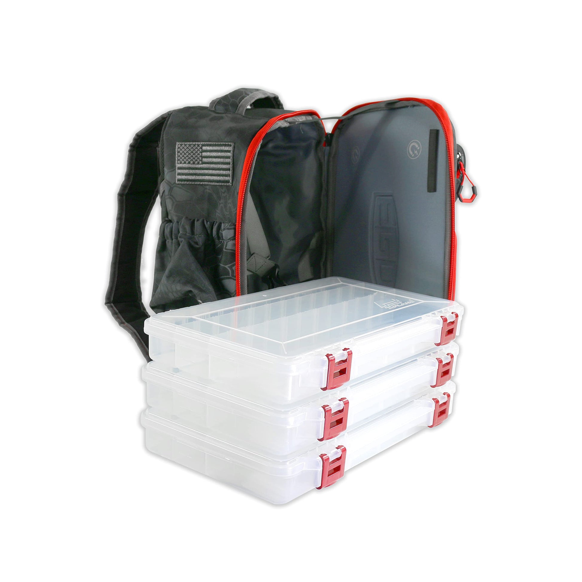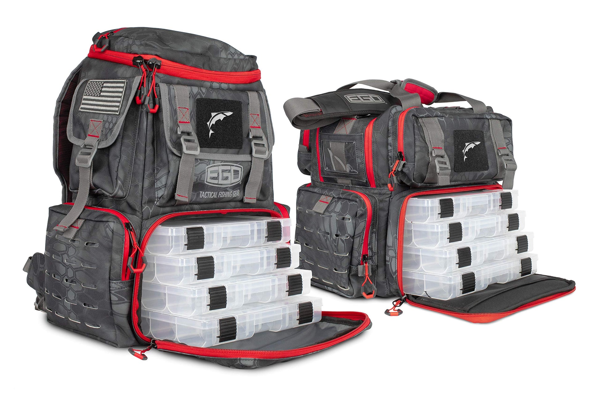 - AMPLE STORAGE CAPACITY: EGO Kryptek Tactical Tackle Box Backpack provides ample storage capacity for all your fishing gear. The included four 10" x 7" clear tackle trays and multiple storage pockets ensure that your fishing tackle and tools are organized and easily accessible, making it the best tackle box backpack for any angler.