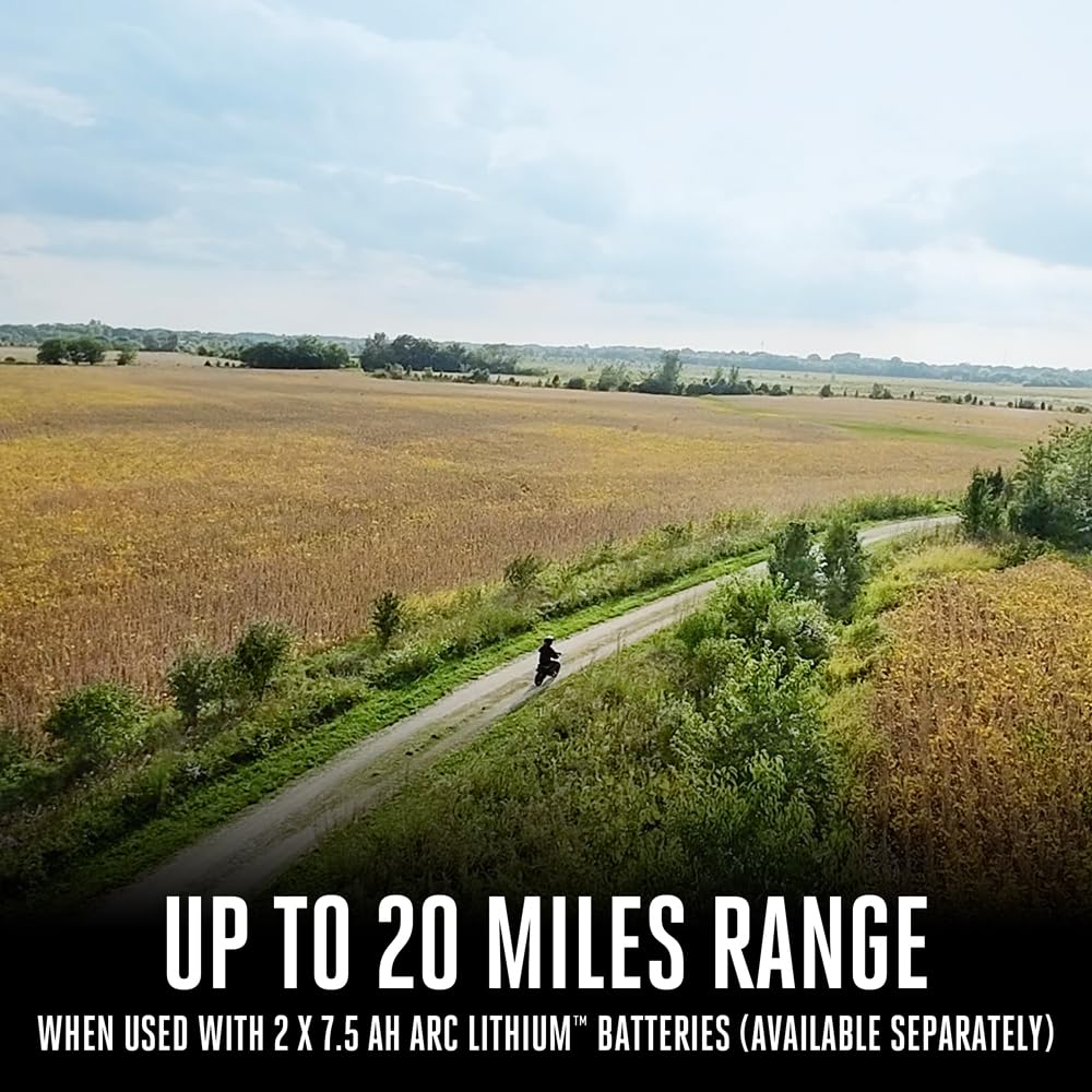- Up to 20 miles of range on a single charge with 2 x 7.5Ah ARC Lithium batteries (available separately)