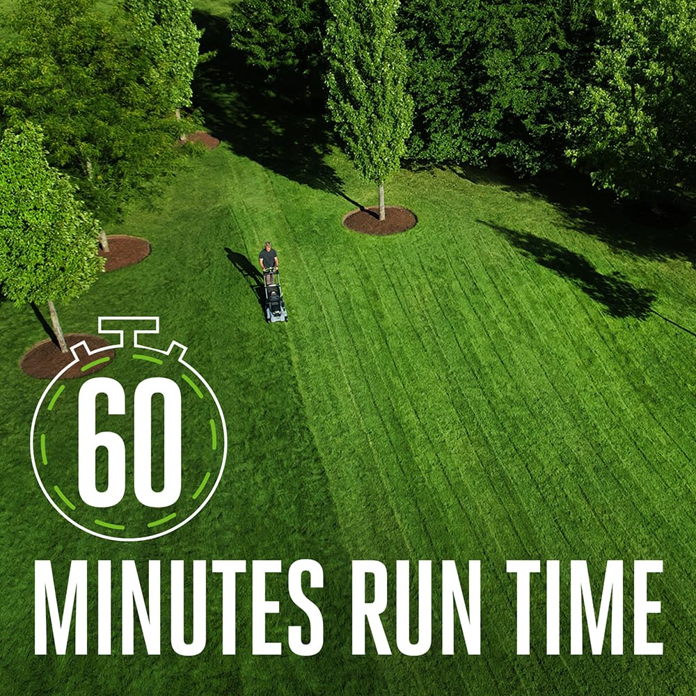 The EGO POWER+ 21" Select Cut Self-Propelled Mower delivers performance that exceeds the power of gas. The Select Cut Multi-blade Cutting System is equipped with three, interchangeable lower blades; the Mulching Blade, High Lift Bagging Blade and Extended Runtime Blade. The Mulching Blade comes installed on the mower and is ideal for weekly mulching, giving you the mulching quality you would expected from a high-end gas lawn mower. The High Lift Bagging Blade provides extra suction ideal for bagging, leaving your yard free of clippings. The Extended Runtime Blade provides an optimal balance of cut quality and runtime for all around performance. All three blades can be used interchangeably based on your desired cut. The EGO Upper Blade is used in combination with the lower blade chosen to slice the grass into fine fragments; this greatly enhances cutting performance with all grass types. EGO’s Self-Propelled Touch Drive Technology comes from years of research and development. Touch Drive Technology puts complete control of the self-propelled system in the palm of your hands by using pressure to engage the system. Easily control the variable speed with a dial positioned at your fingertips for safe and convenient operation. EGO harnesses the power of the industry’s most advanced 56 Volt 7.5Ah ARC Lithium Fuel Gauge battery by delivering over 60 minutes of cutting time on a single charge.