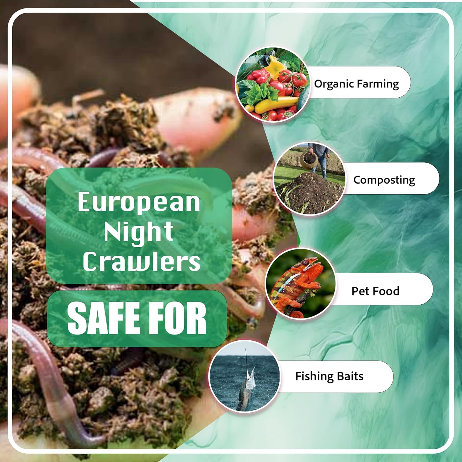 European Nightcrawlers - Approx. 125-150 Live Composting & Fishing Worms, Premium High-Performance Bait for Anglers, Versatile for Trout, Panfish, & Garden Soil Enrichment, Fresh Live Arrival Promised