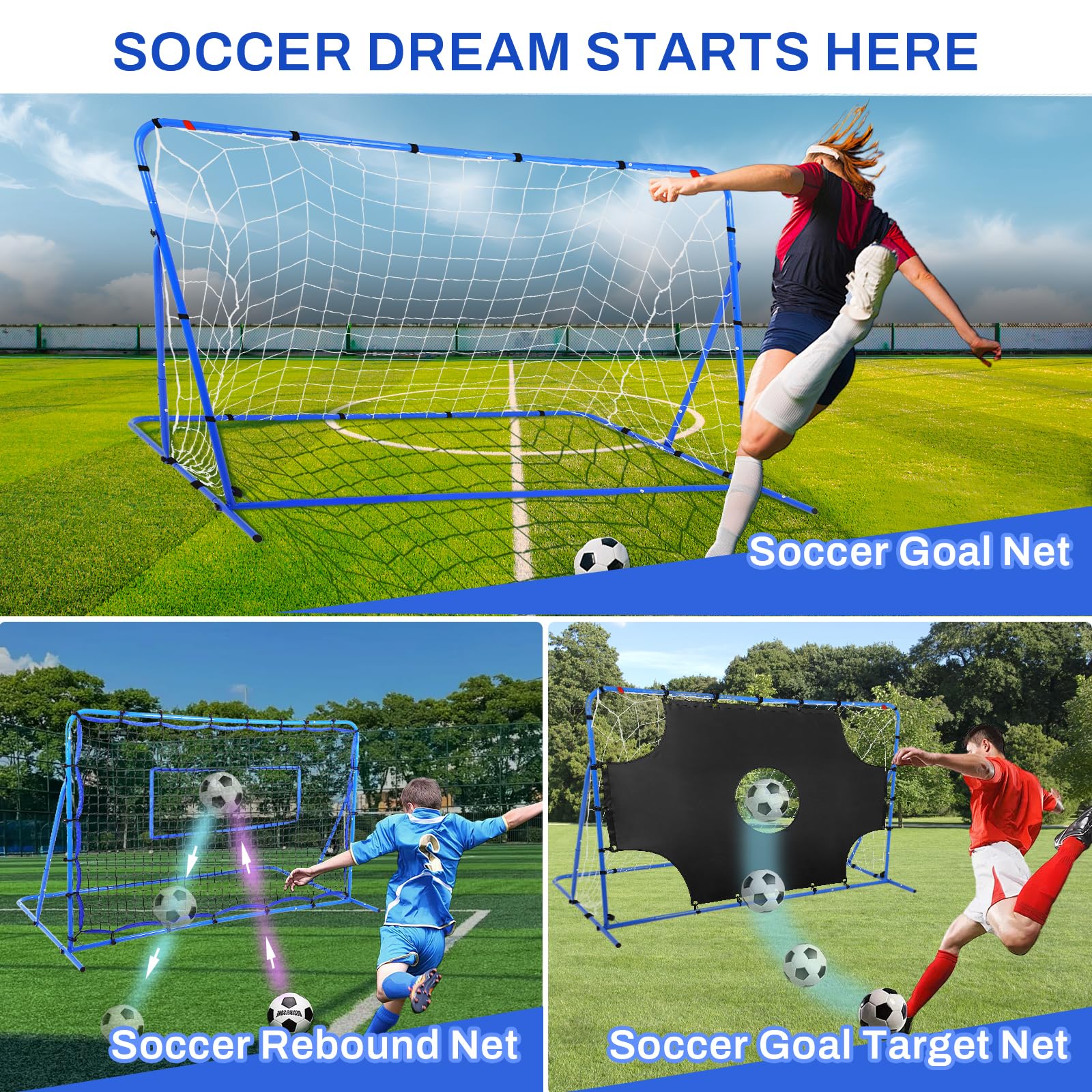 FAHKNS Three Modes of Soccer Goal(6x4ft), Target Net and Rebound Net, Precision Training, Tear-Resistant, Corner Kick Training, Suitable for Children and Teenagers Control