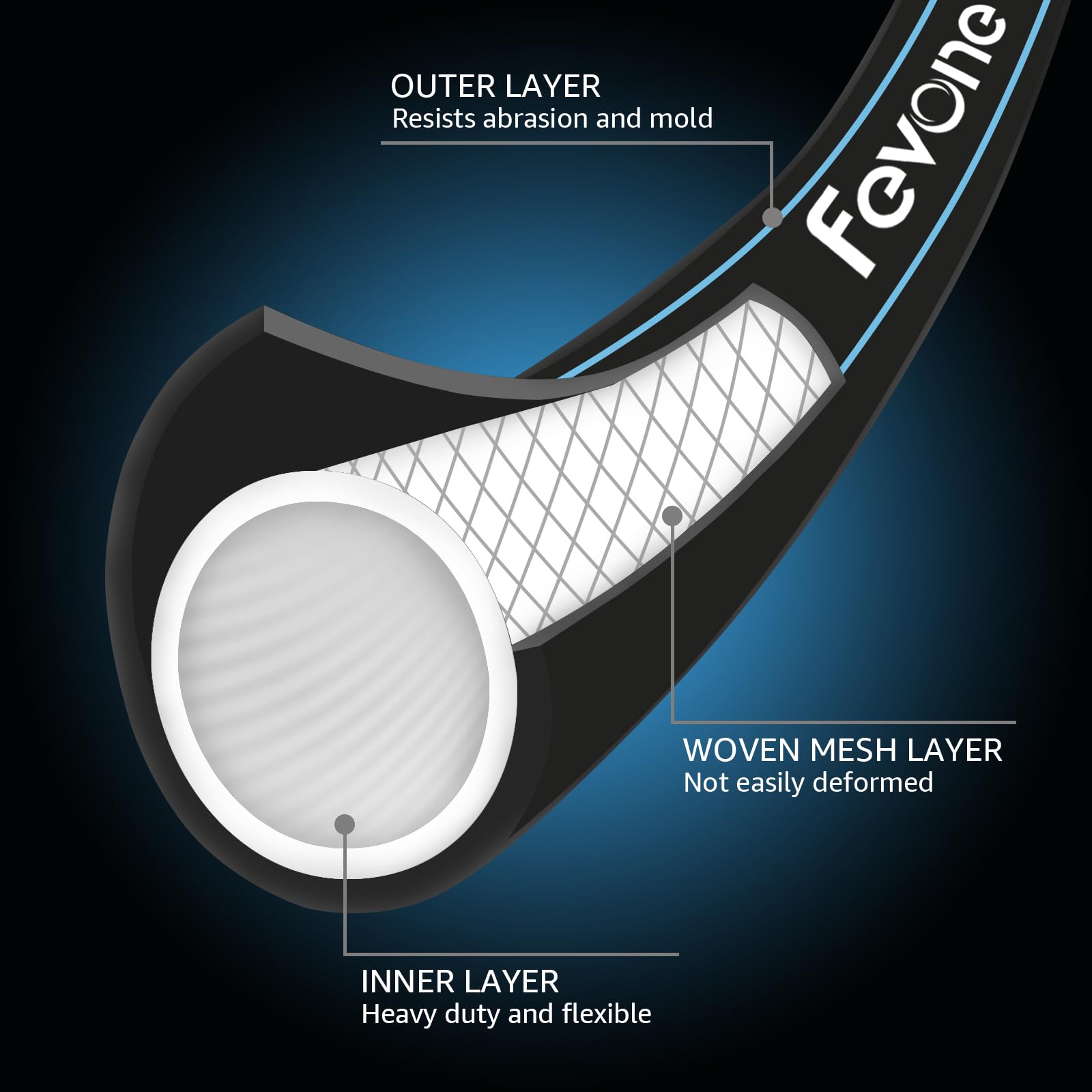 Fevone 50ft Heavy Duty Garden Hose – 5/8" ID, 600 PSI, Hybrid Polymer, Kink-Resistant, Flexible, Durable, 3/4" GHT Solid Brass Fittings