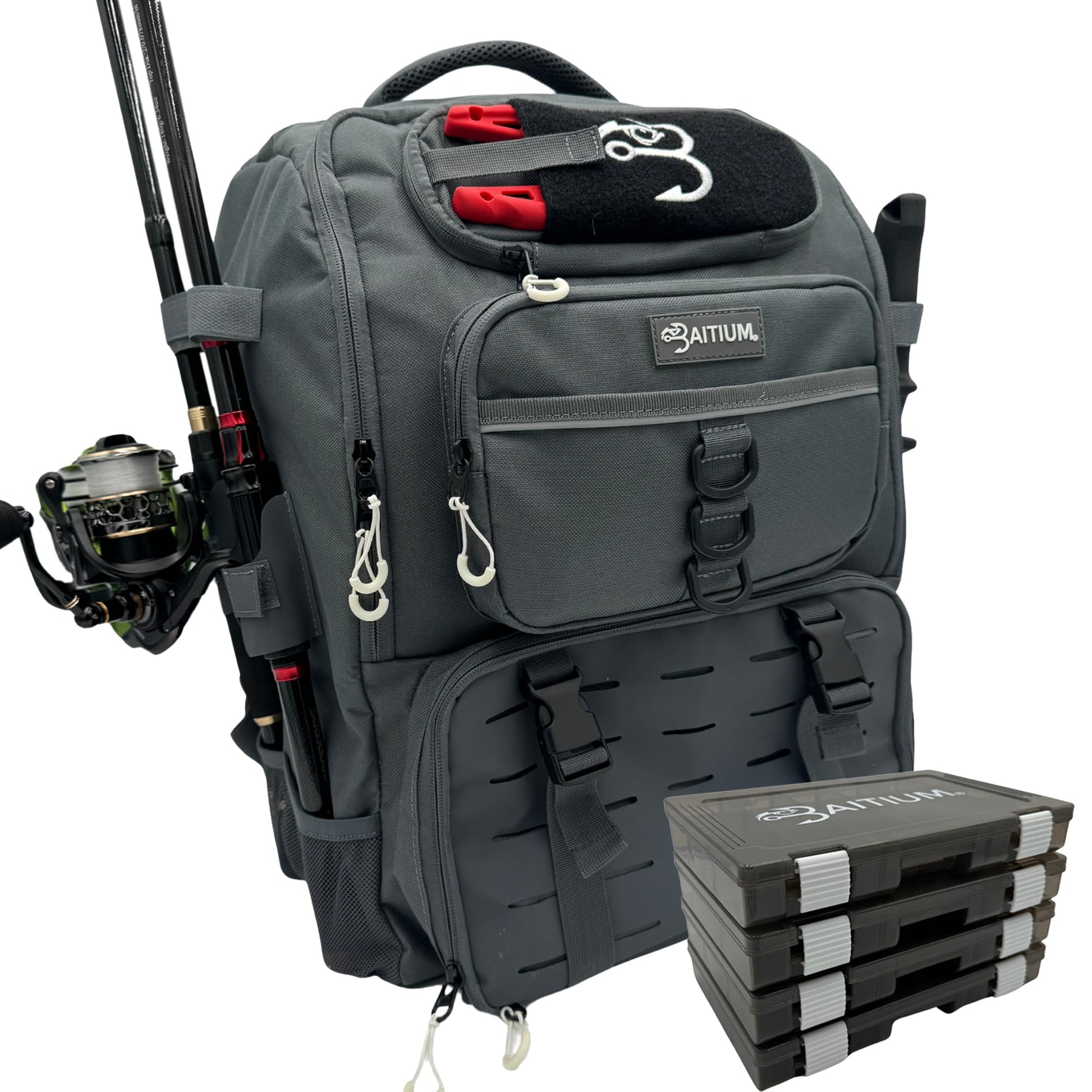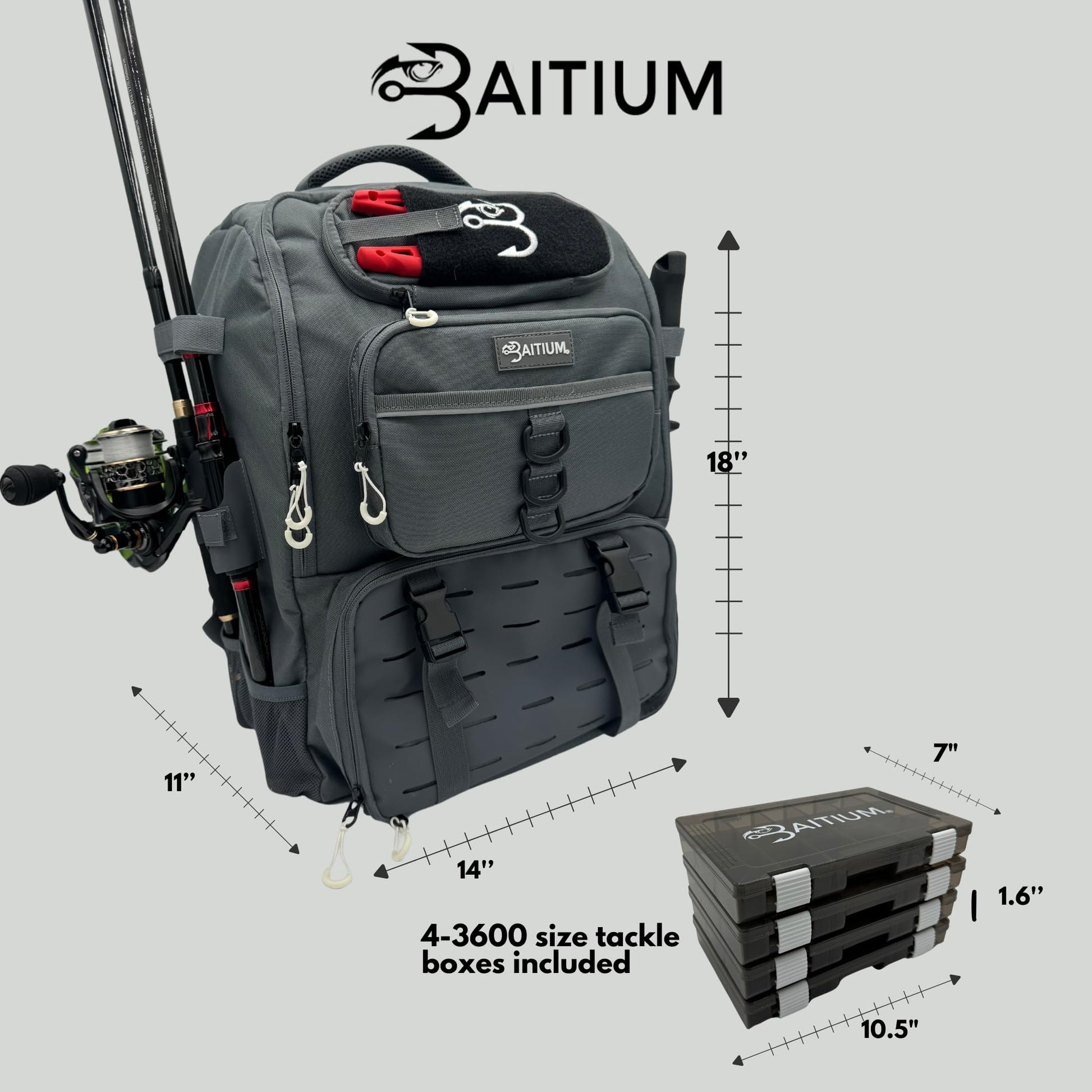 • Perfect Gift for Anglers- The Baitium 40L Fishing Tackle Backpack isn't just a gear essential; it's the perfect fishing Gifts for Men and for passionate anglers in your life. From its innovative hands-free rod holders to the insulated pocket ensuring bait freshness, every detail is crafted for an unmatched fishing experience. With four 3600 size tackle boxes offering ample storage, this backpack guarantees organization and convenience.