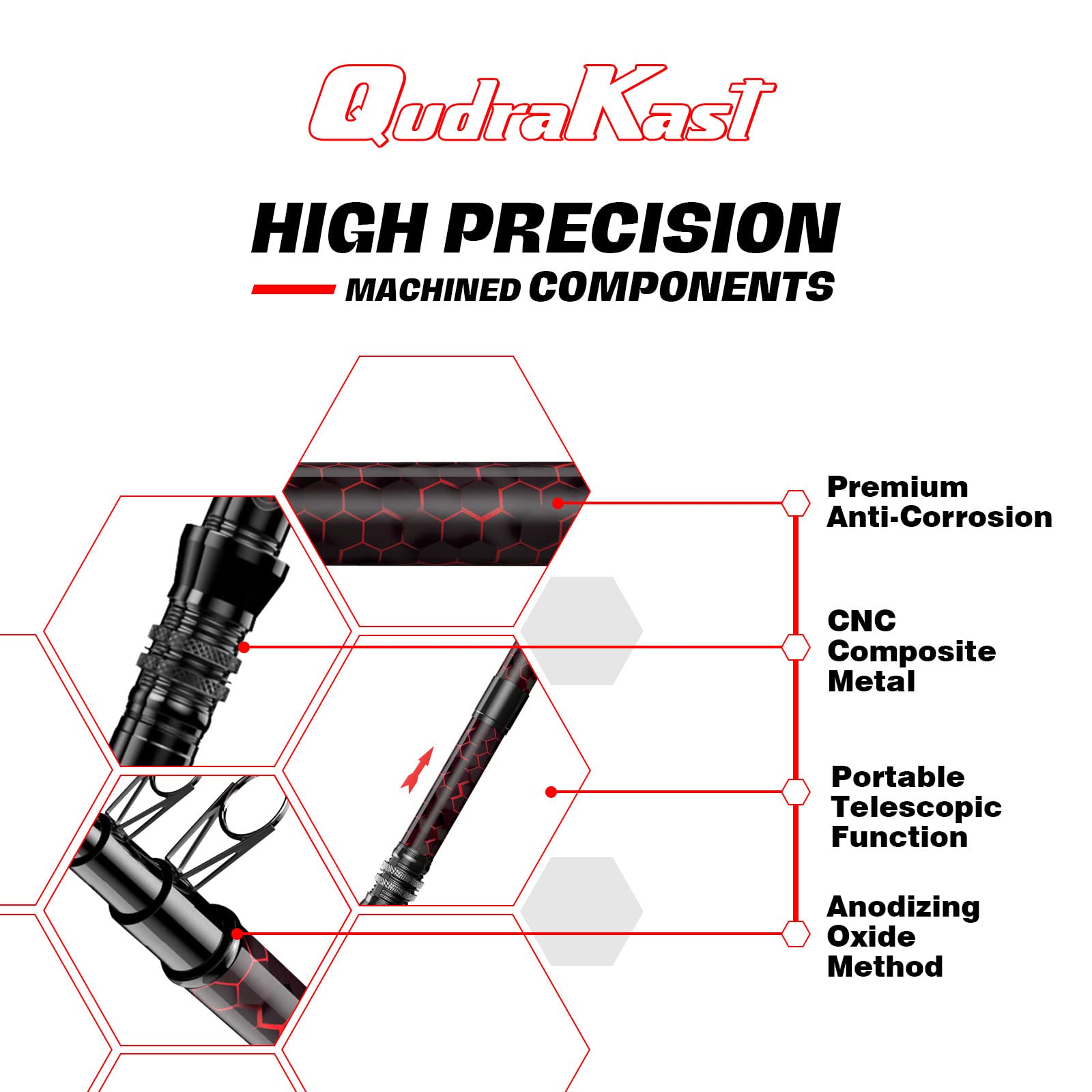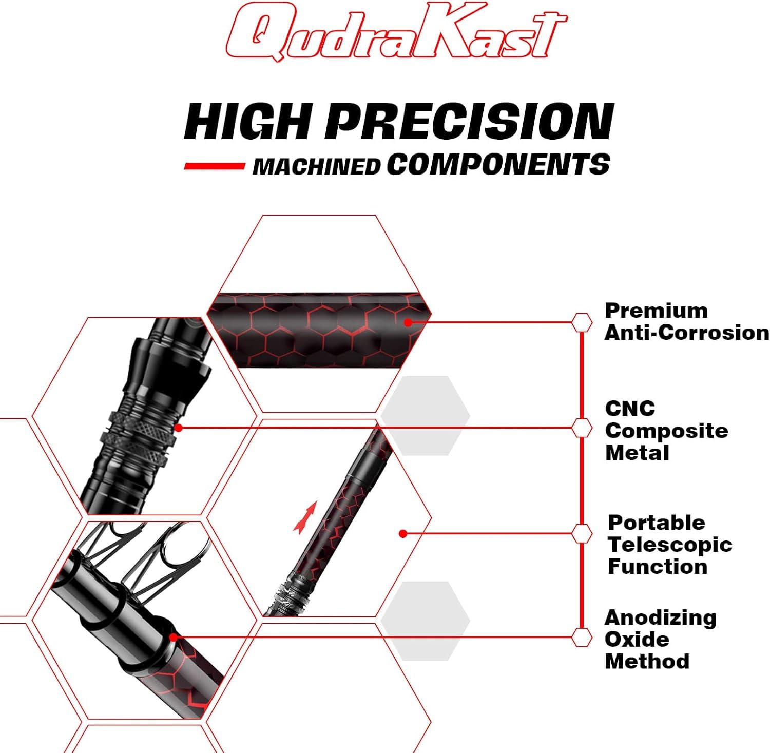 - X-Wrap Protect Design: From dads to moms, boyfriend, kids and grandparents, anyone can use and enjoy the QudraKast travel fishing rod. Professionals angler and recreational fishers alike will be amazed at the new Blaze pattern design, capabilities and comfortability.