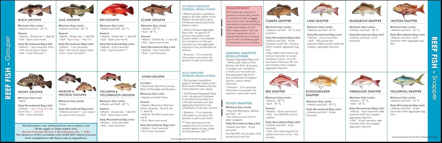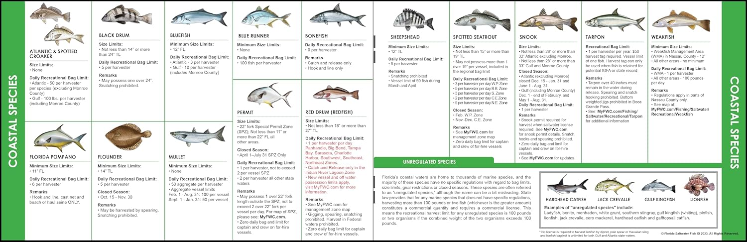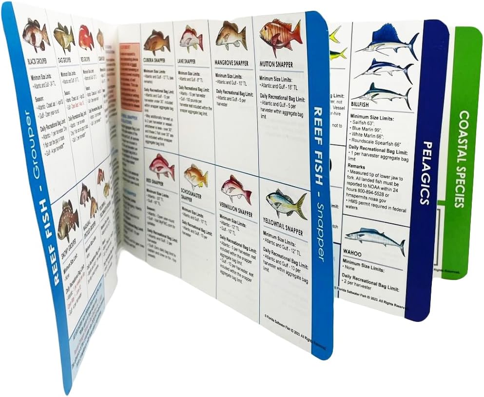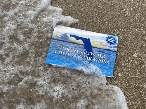 Florida Saltwater Fishing Guide. 100% Waterproof Fish Identification Book with 12 Pages, FWC Rules, Limits, and Seasonal Regulations, 70+ Fish and Shark Photos, Angler and Fisherman Chart