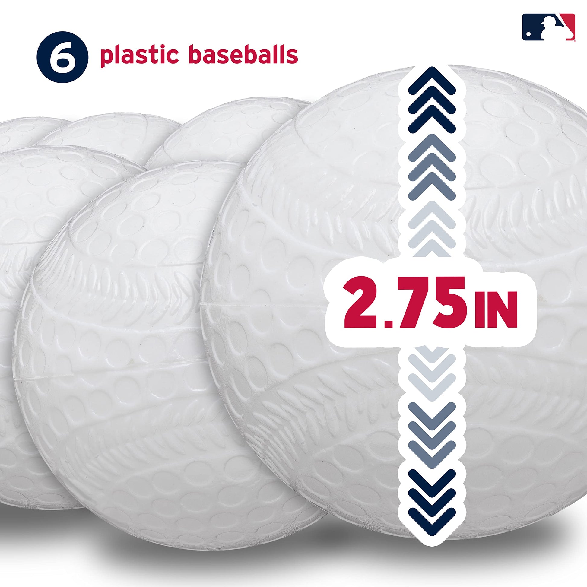 - SIX BALLS INCLUDED: This batting machine includes six white aero strike baseballs; You should not use regulation baseballs or tee balls with this baseball machine – only use the balls included; The ball shoot can hold up to 9 balls