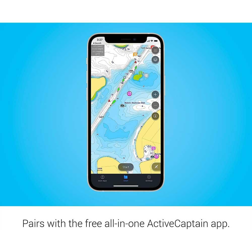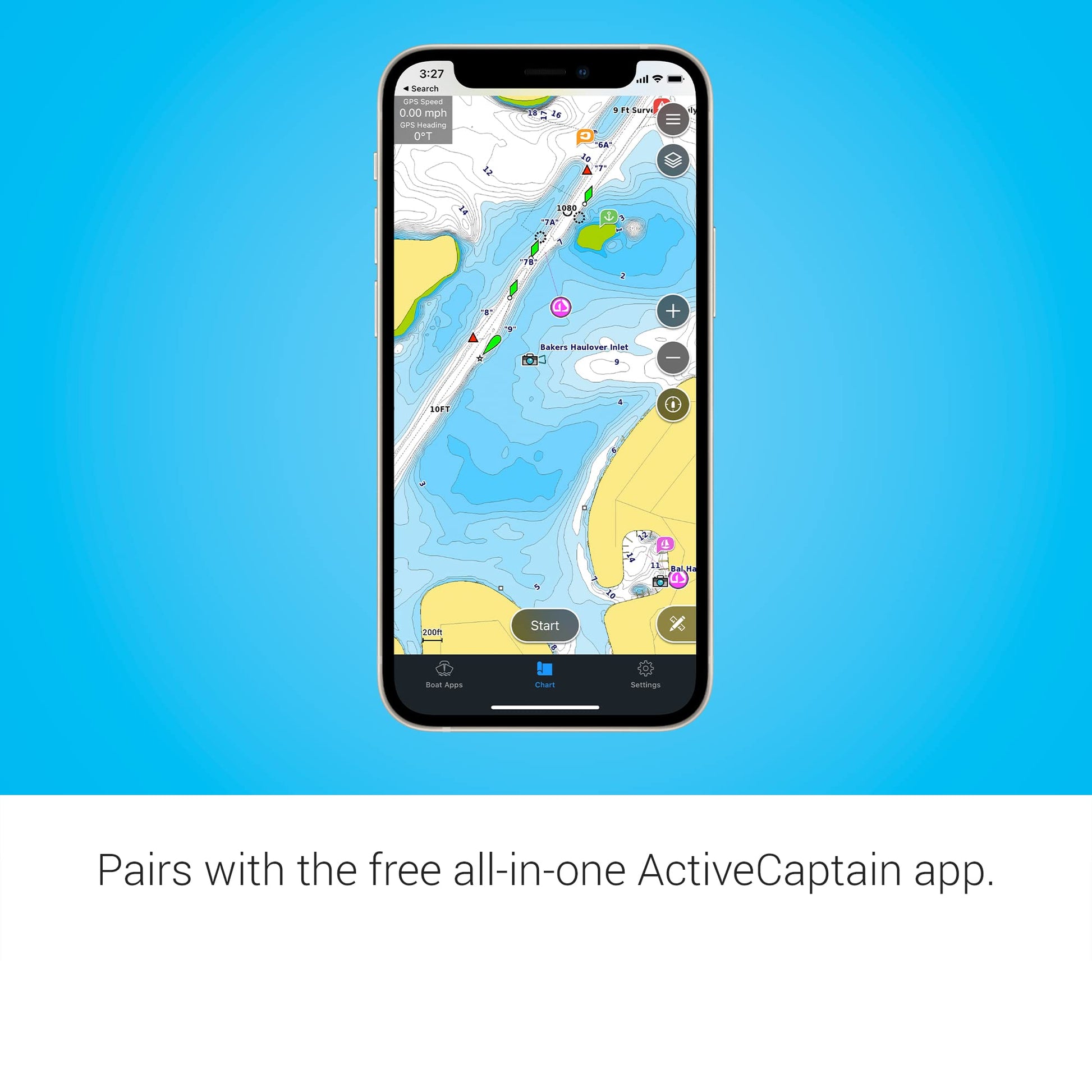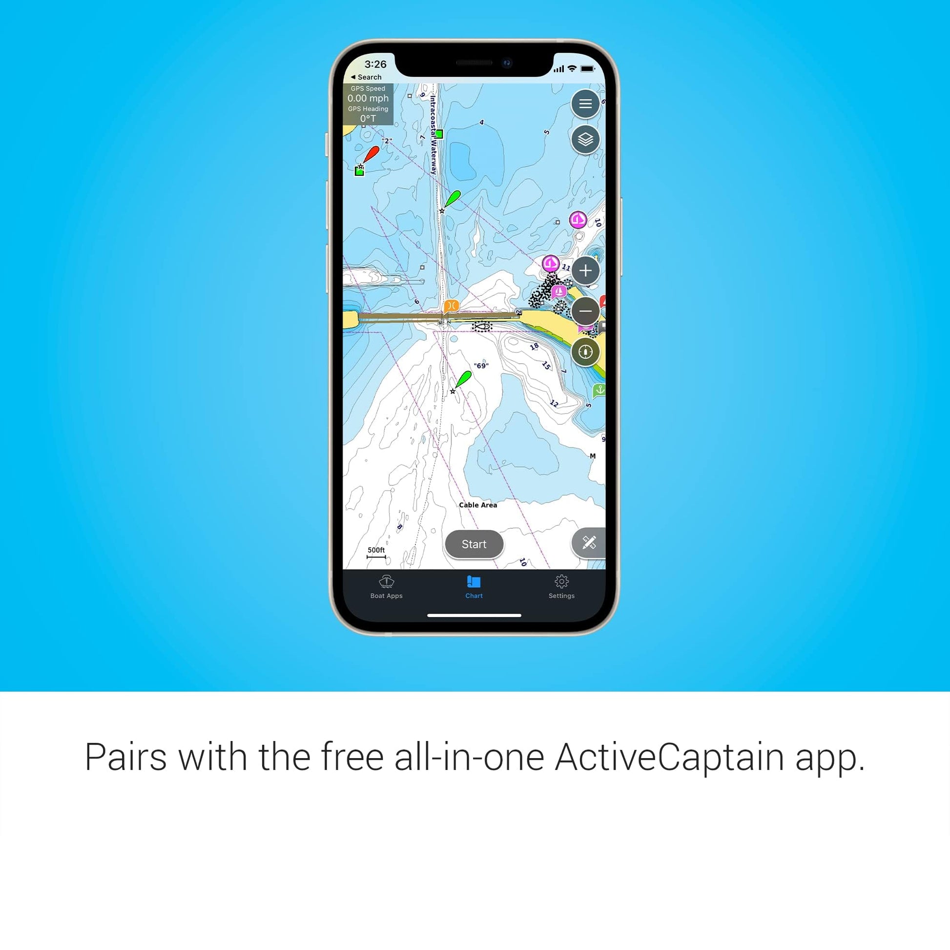 - Built-in Garmin Navionics+ coastal charts with integrated Navionics data