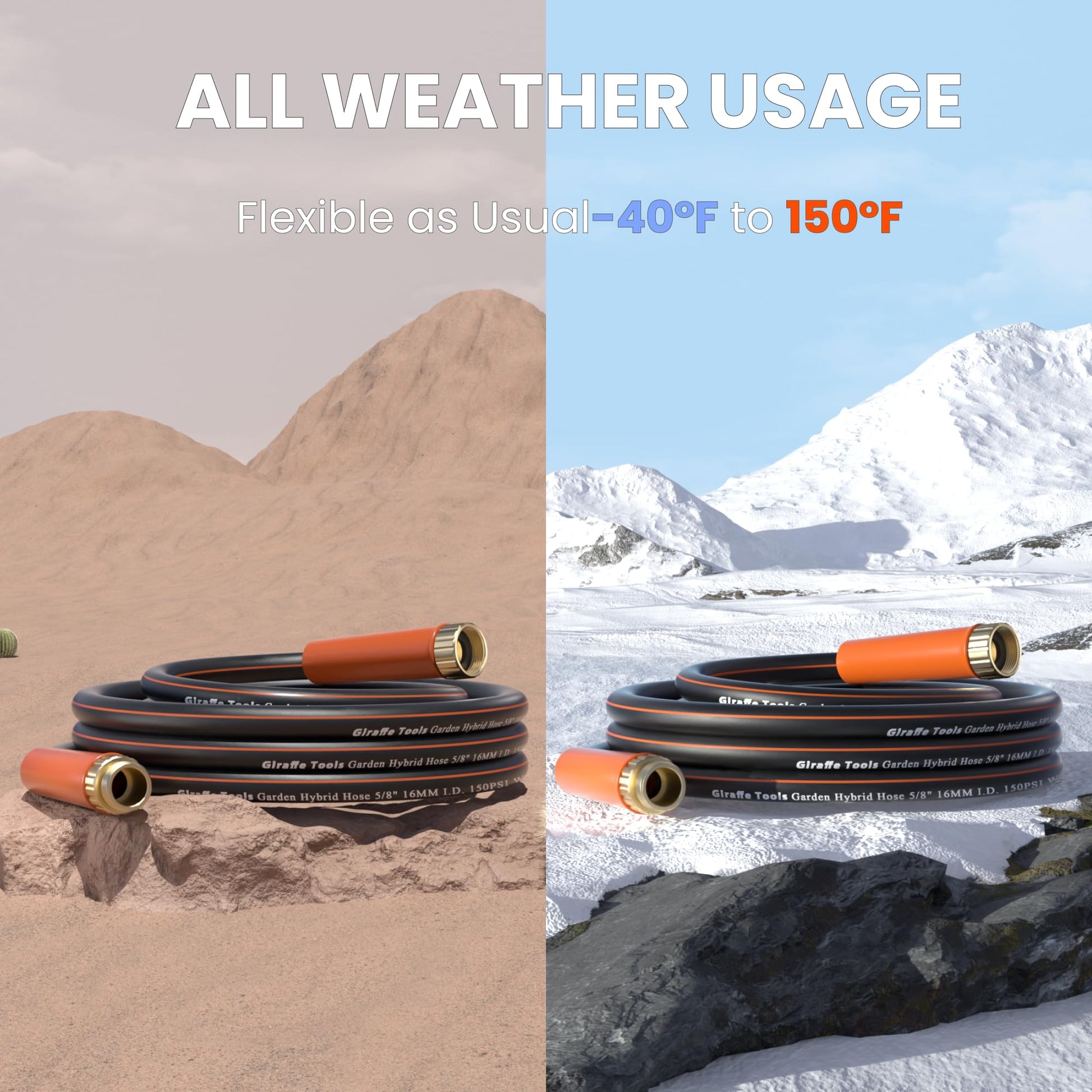 - All-weather Flexible - The rubber component allows the hose to remain flexible in extreme temperatures, defying heat or cold, still easy to coil and uncoil.