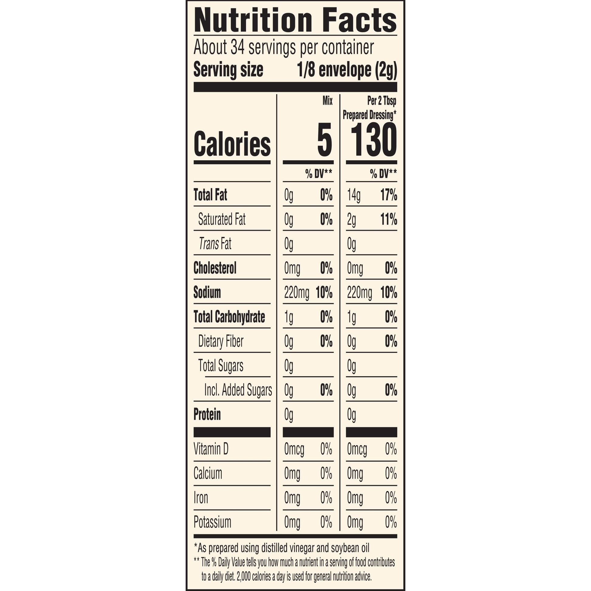 - Italian dressing mix contains 5 calories per serving