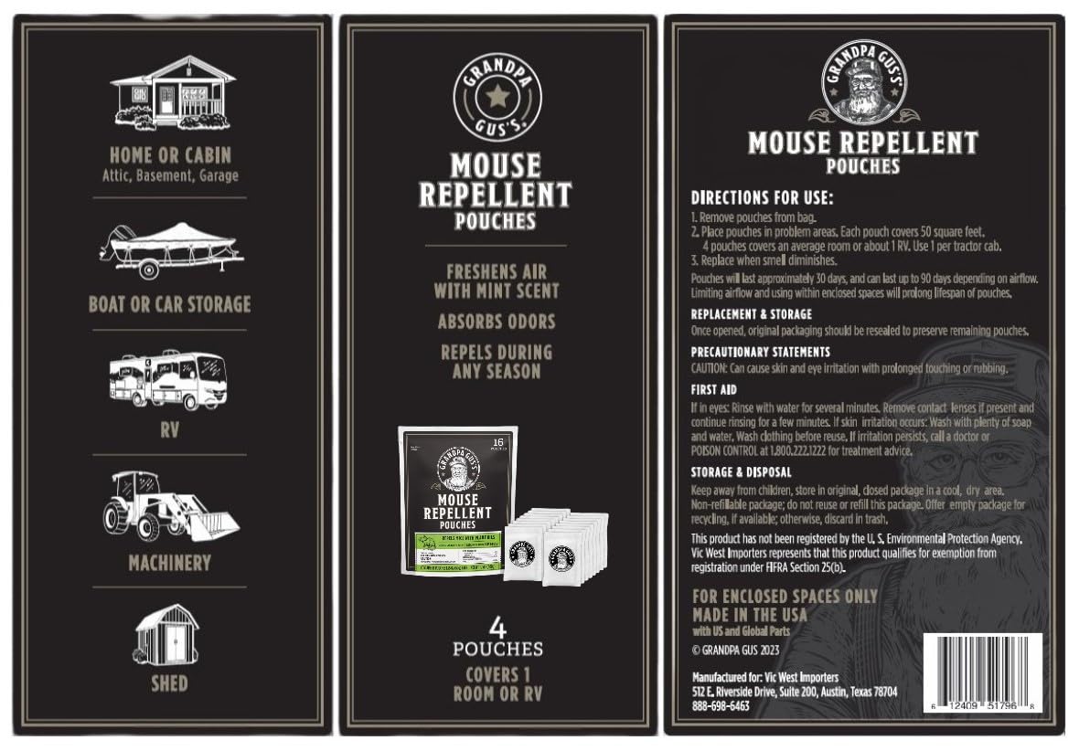 Grandpa Gus's Extra-Strength Mouse Repellent Pouches, Cinnamon/Peppermint Oils Repel Mice from Nesting & Freshen Air in Car/RV/Boat/Garage/Shed/Cabin, 1.75 oz (Pack of 10)