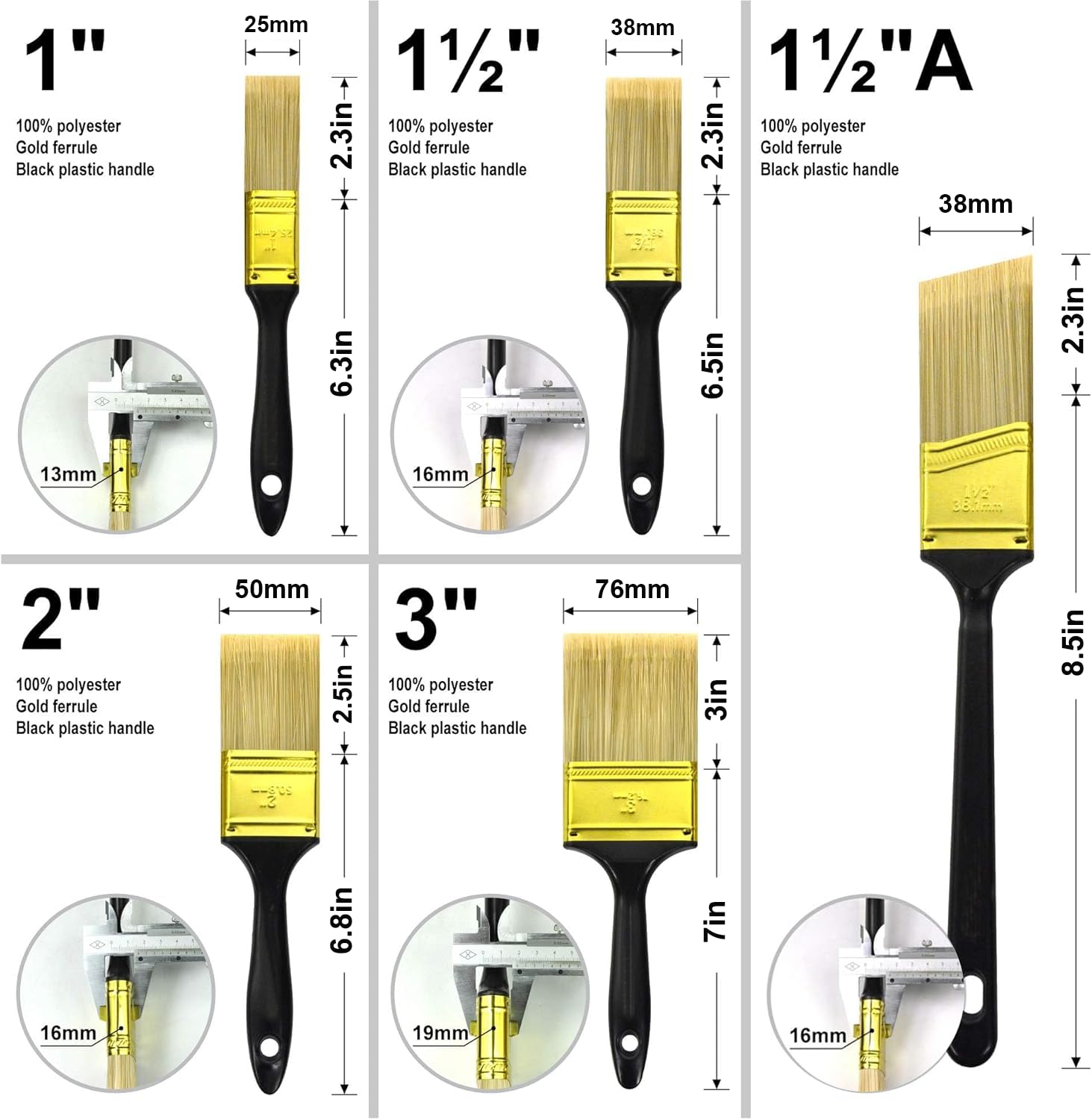 - Great Andrew Paint brushes set includes 5 different sizes, 1", 1.5", 2", 3" and 1.5" angle, 5 pieces per set, 6 sets of 30 pieces in total.