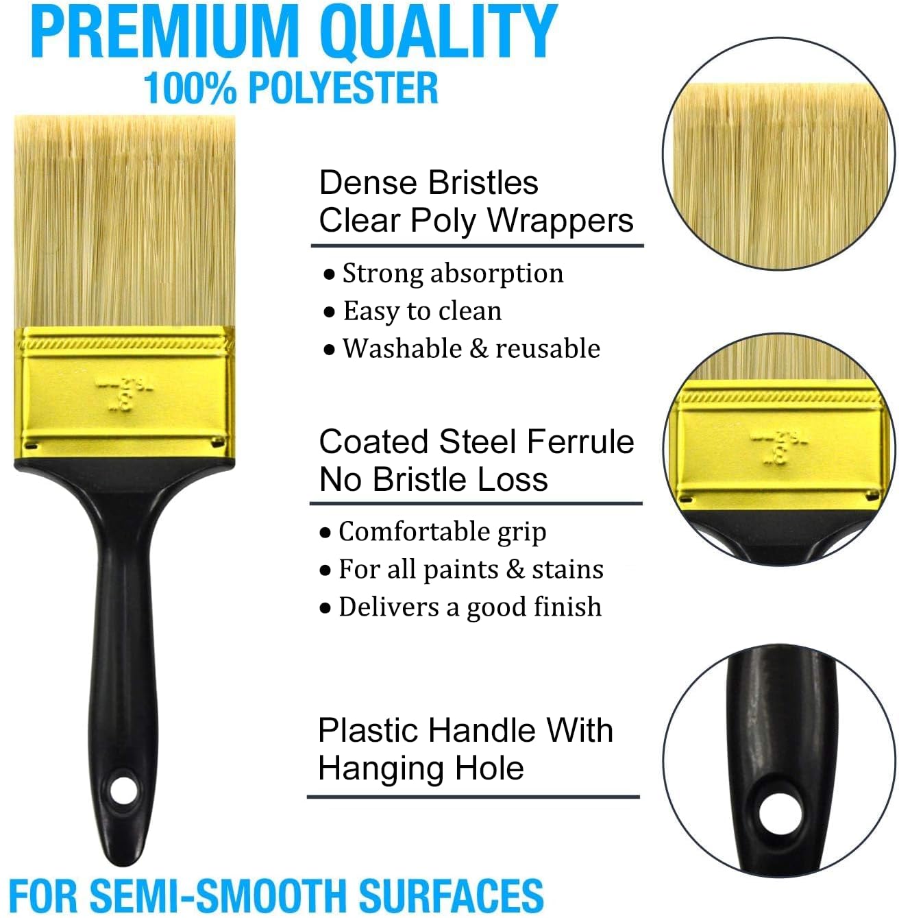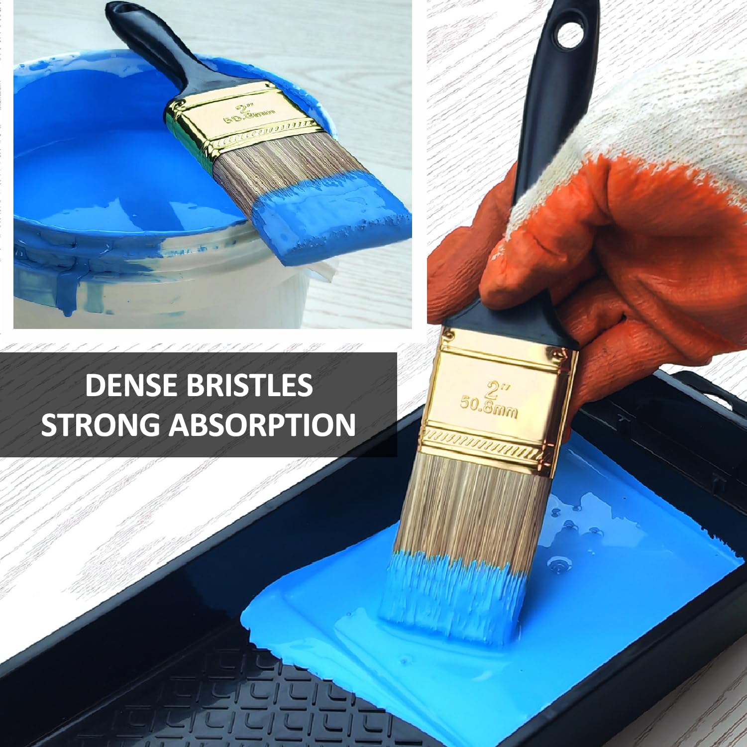 - The metal ferrule firmly holds the bristles, making bristles less to fall off. These versatile paint brushes for walls are easy to clean and can be reused for indoor or outdoor projects.