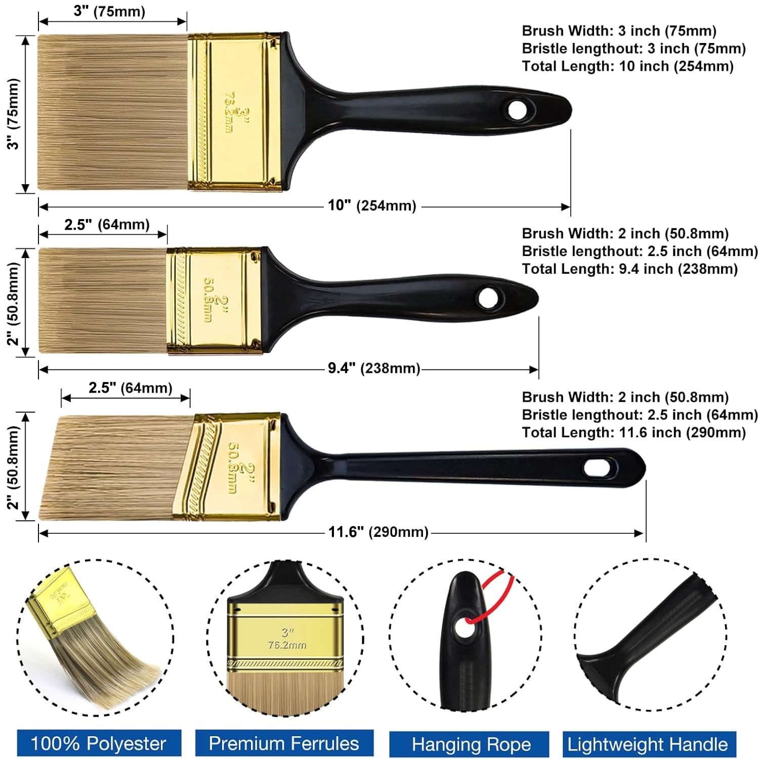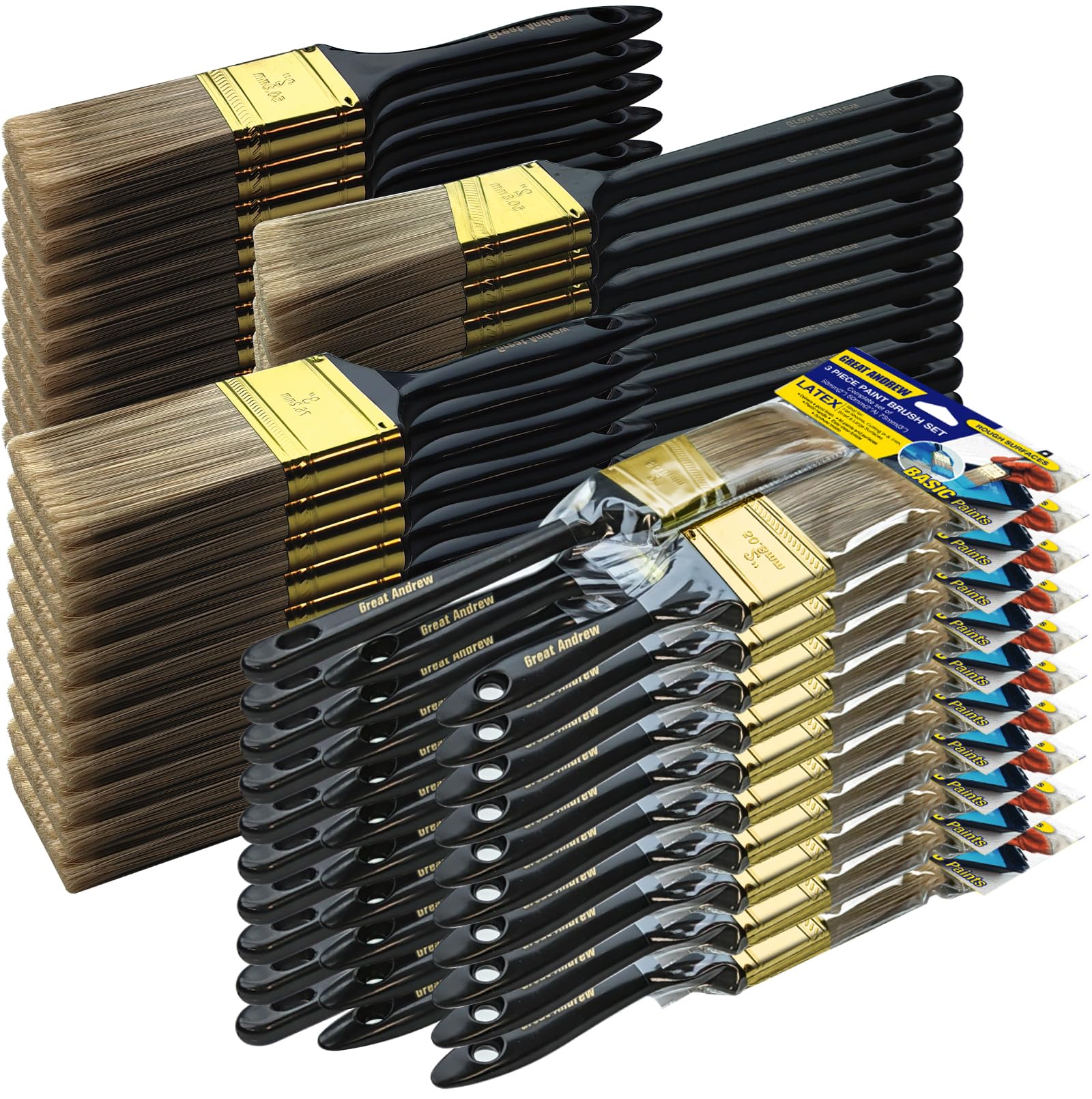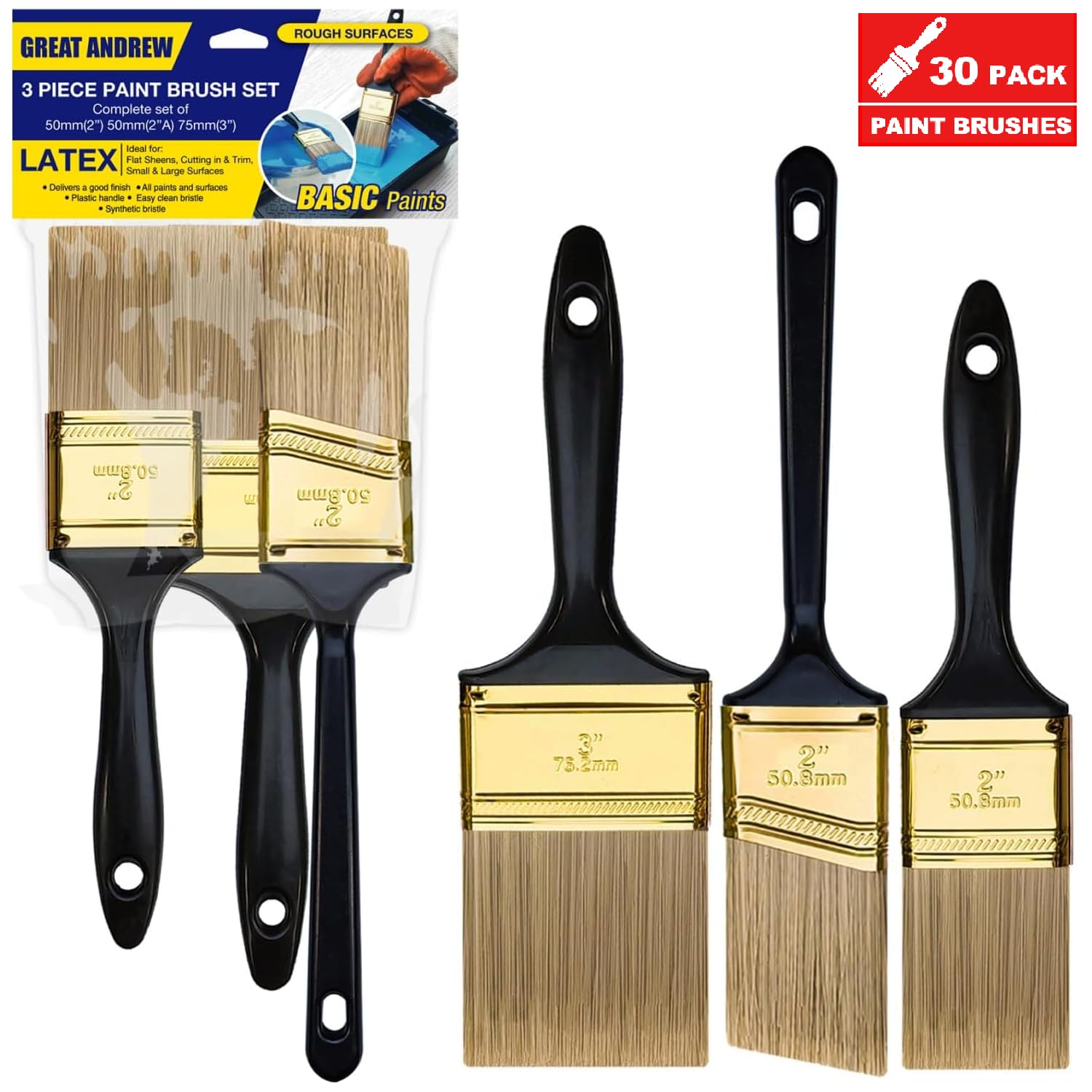 Great Andrew Paint Brushes, 30 PCS Great Value Multi use(3" 2" 1.5" 1" Flat &1.5" Angled) Paint Brush Pack, Paint Brushes Set for Home Furniture Fences Wall Trim
