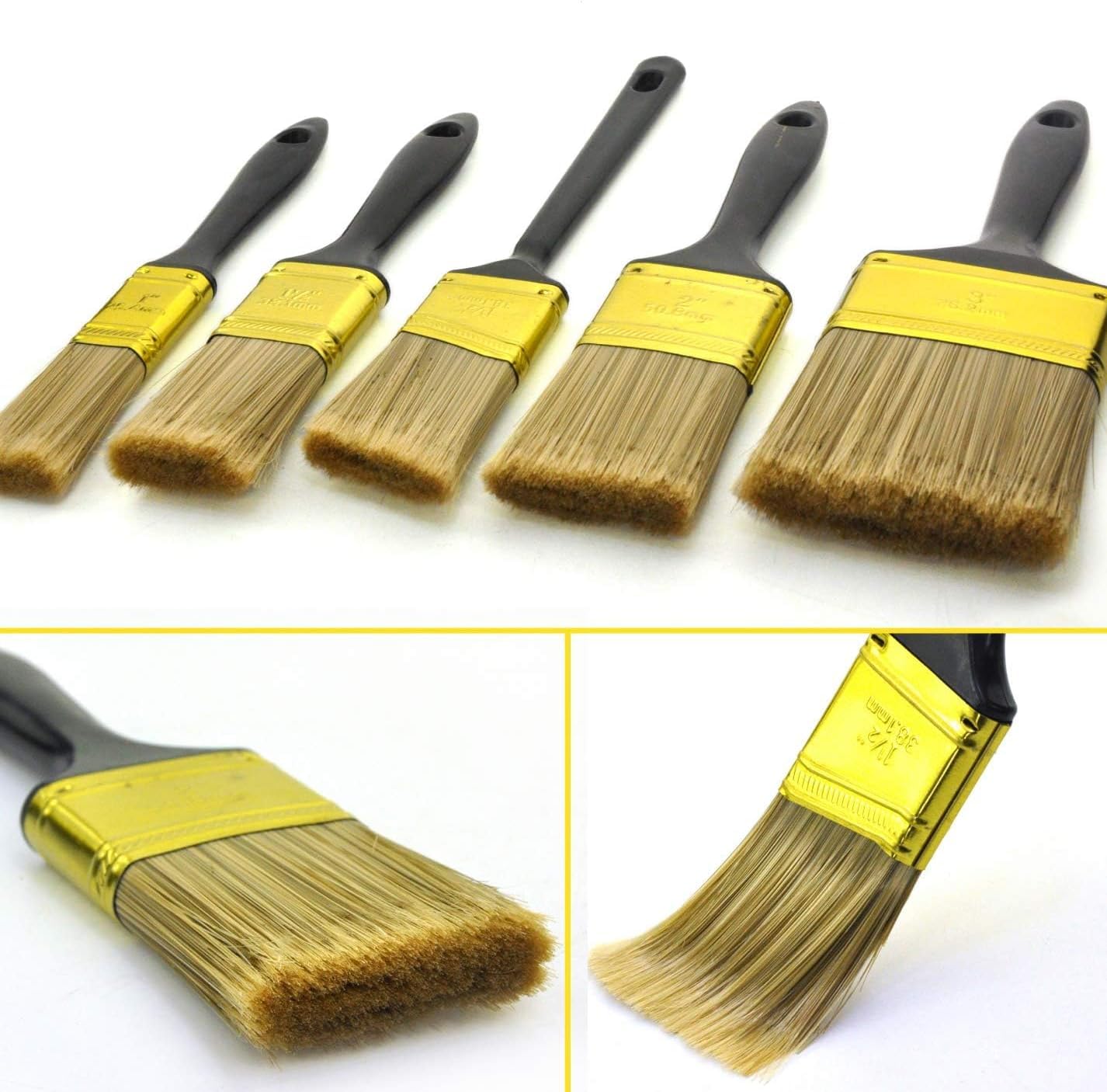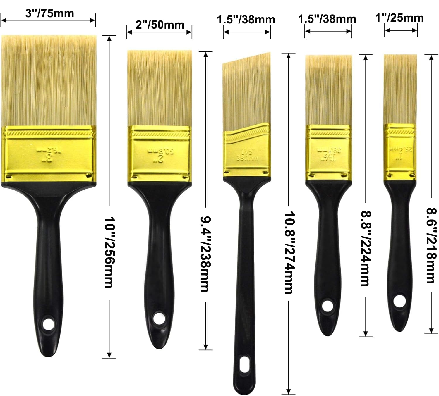 This 30-pack paint brushes set includes 5 different sizes: 1" Flat, 1.5" Flat, 2" Flat, 3" Flat and 1.5" Angled.