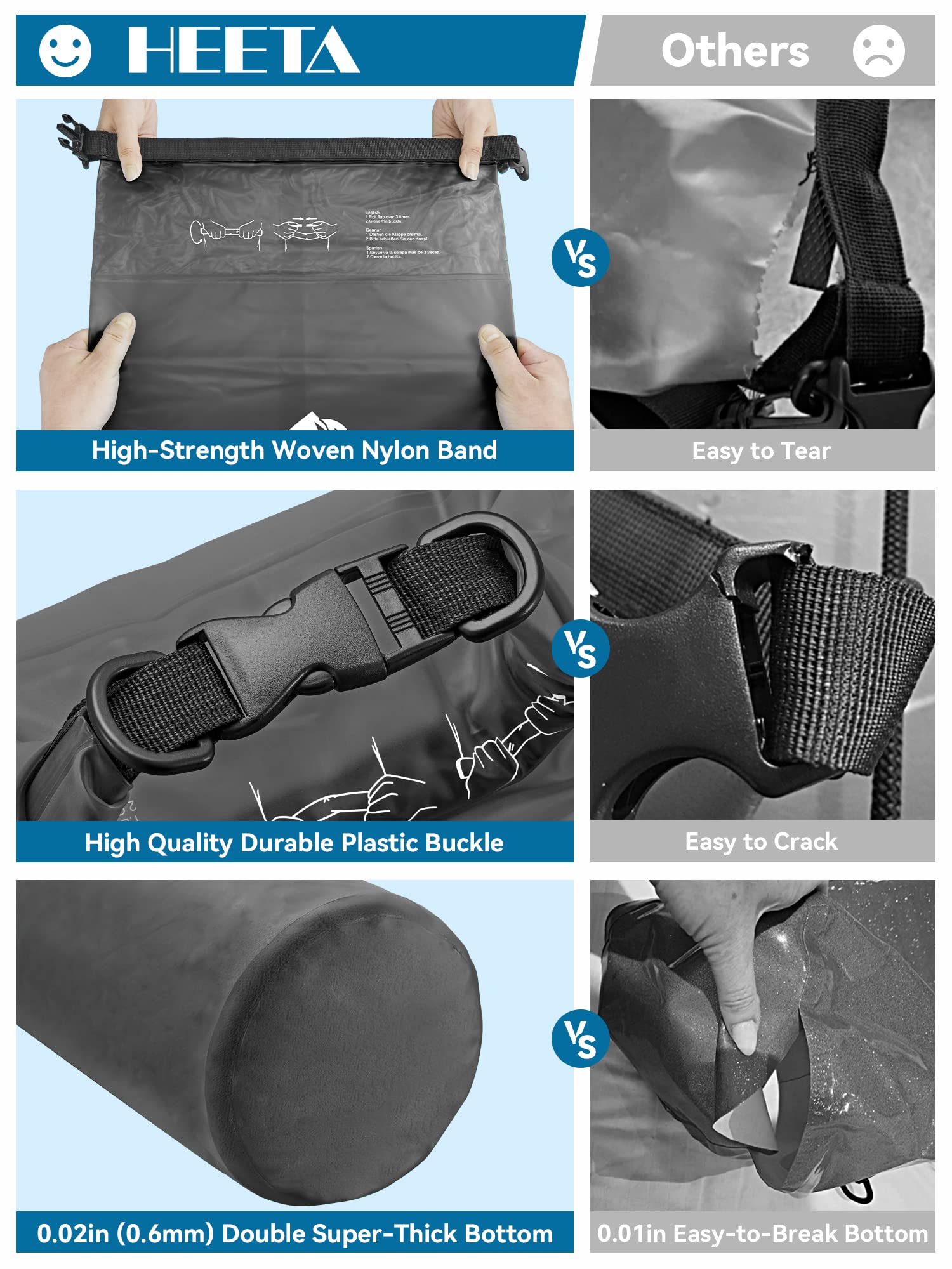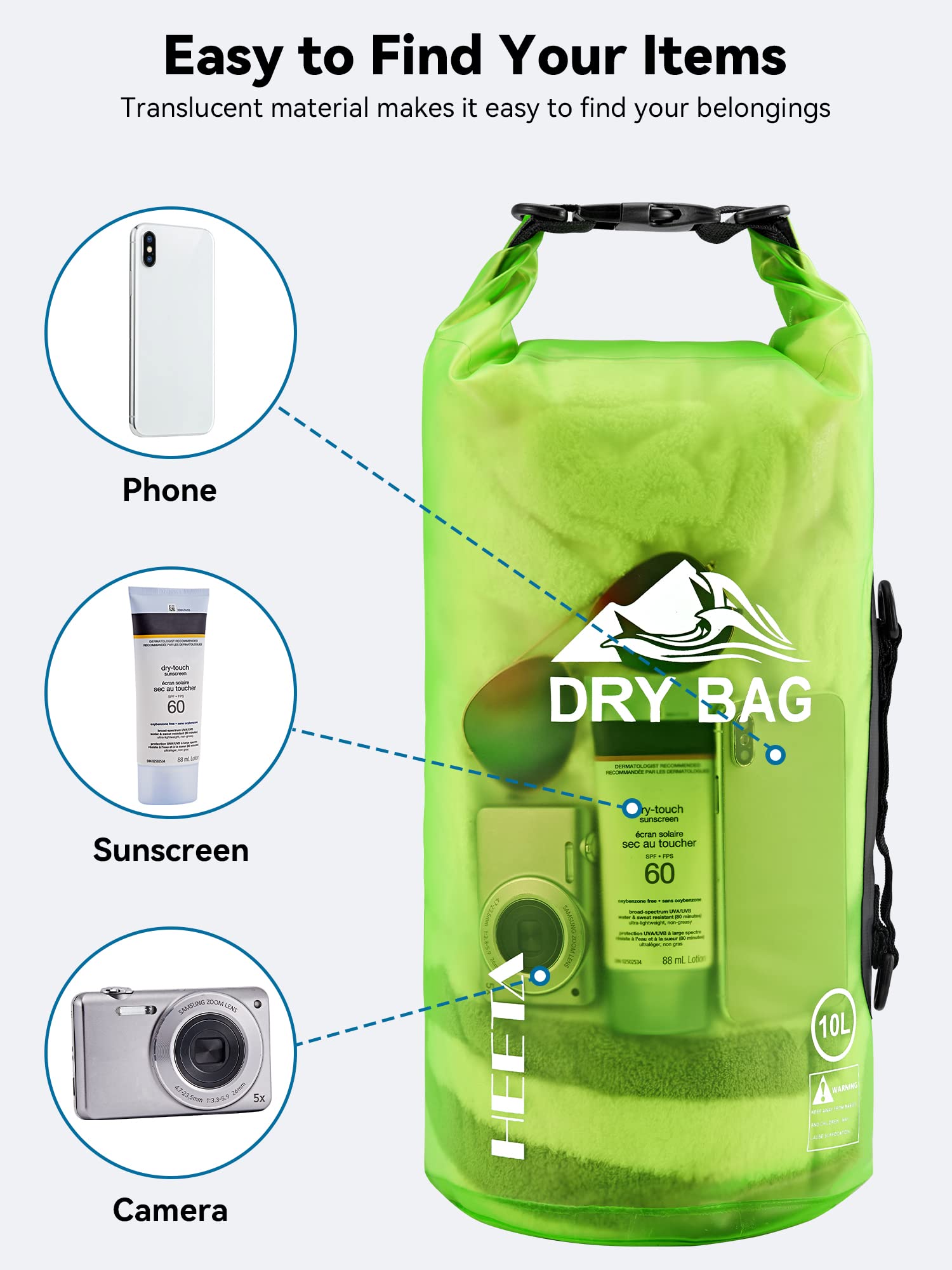 HEETA Dry Bag Waterproof for Women Men, 5L/10L/20L/30L/40L Roll Top Lightweight Dry Storage Bag Backpack with Phone Case for Travel, Swimming, Boating, Kayaking, Camping & Beach, 11 Transparent Colors