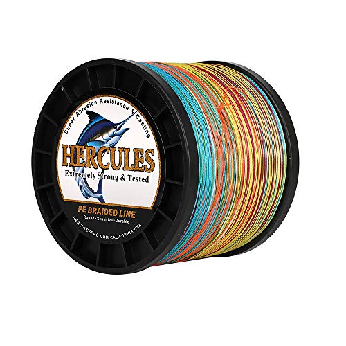 HERCULES Cost-Effective Super Cast 8 Strands Braided Fishing Line 10LB to 300LB Test for Salt-Water,109/328/547/1094 Yards(100M/300M/500M/1000M),Diam.#0.12MM-1.2MM,Hi-Grade Performance,Variety Colors