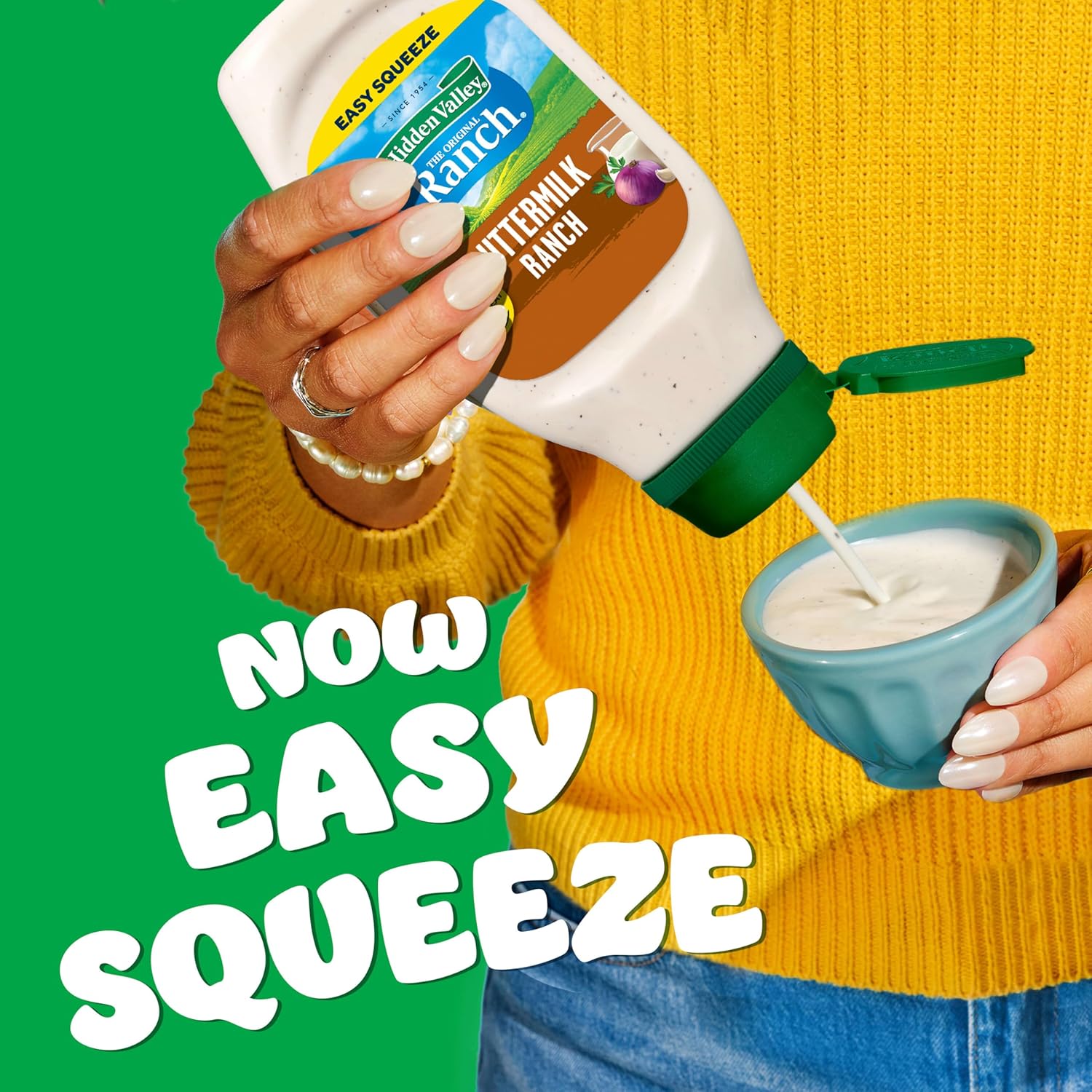 - DELICIOUS FLAVOR: One 16-oz. Easy Squeeze bottle of Hidden Valley Buttermilk Ranch Dressing for scrumptious flavor to delight your taste buds with every bite