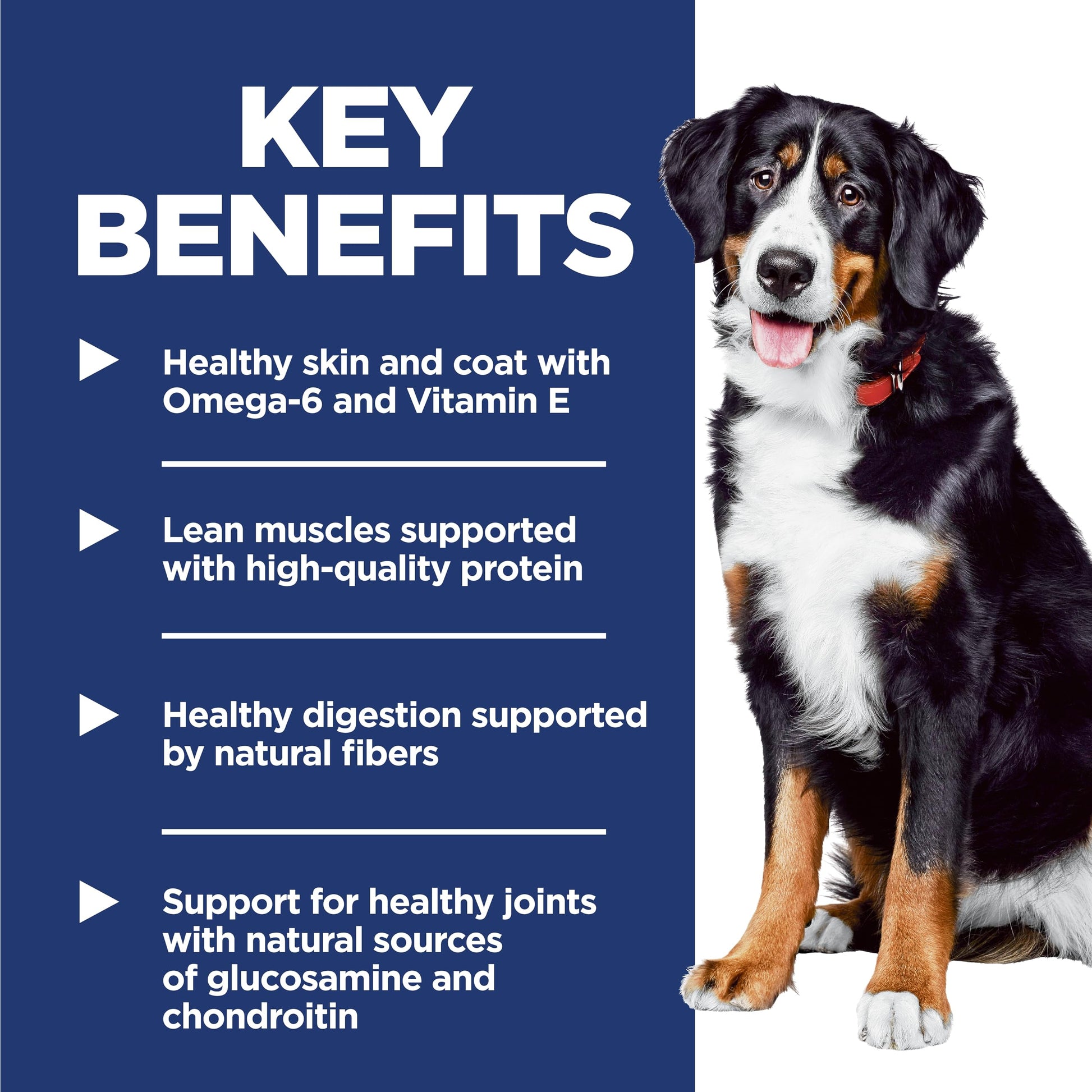 Big dogs have their own set of nutrition needs, so Hill's Science Diet Large Breed adult dog food is specially formulated to fuel the energy needs of large breed dogs during the prime of their life. Made with high-quality, easy-to digest-ingredients, this food made for fully grown large dogs supports the building of lean muscle with high-quality protein, as well as glucosamine and chondroitin for healthy joints & mobility. A balanced blend of omega-6s and vitamin E nourishes your dog's skin for a healthy, shiny coat. There’s more to love with the new look of Science Diet. Some of our products also have new names, new kibble shapes & new formulas.