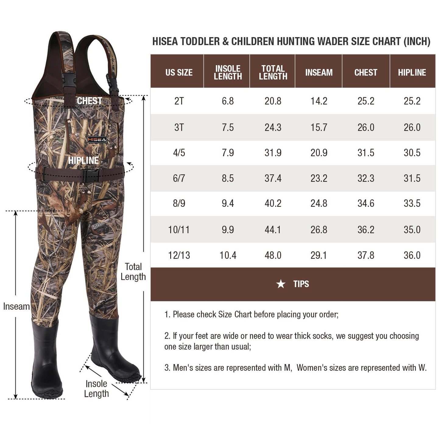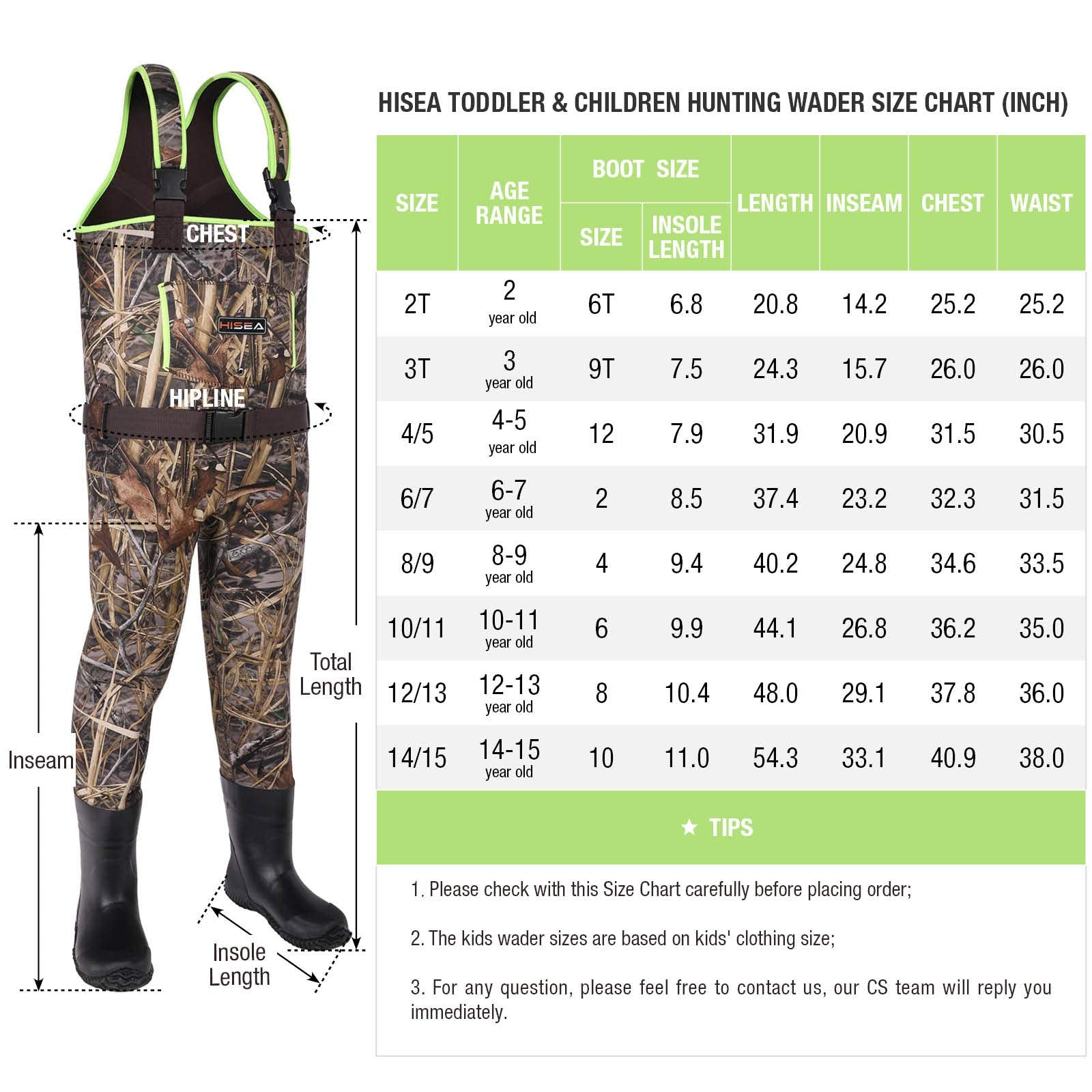 HISEA Kids Chest Waders for Toddler & Children Neoprene Youth Duck Hunting Waders for Kids Boys Girls with Insulated Boots