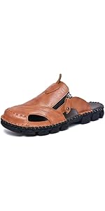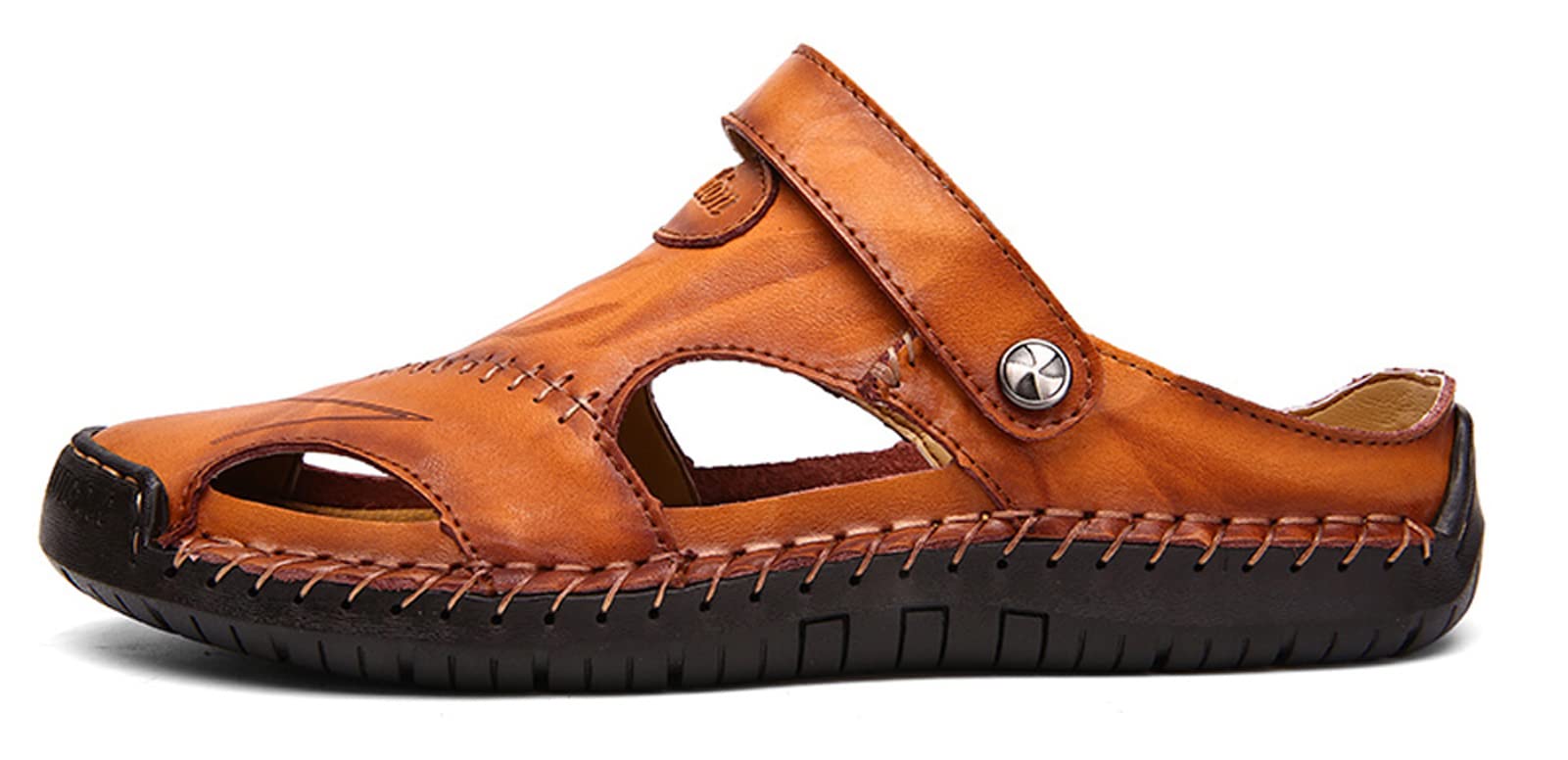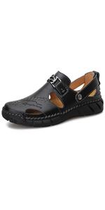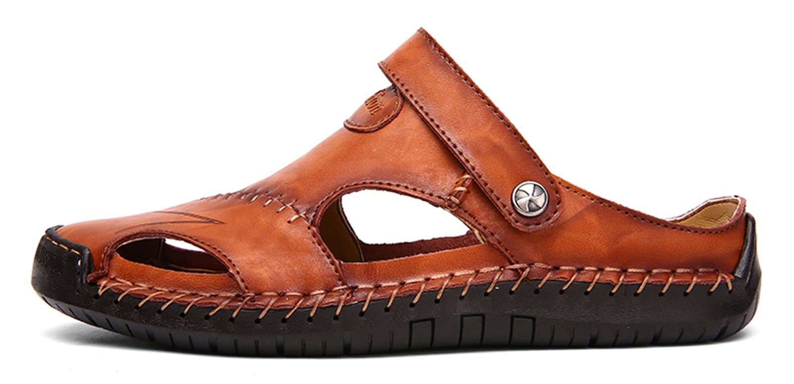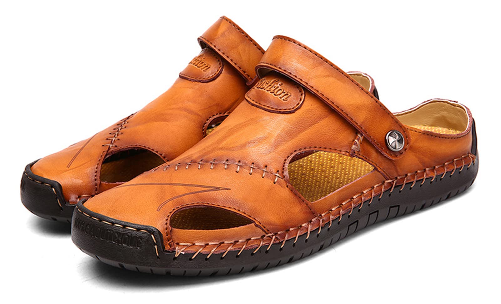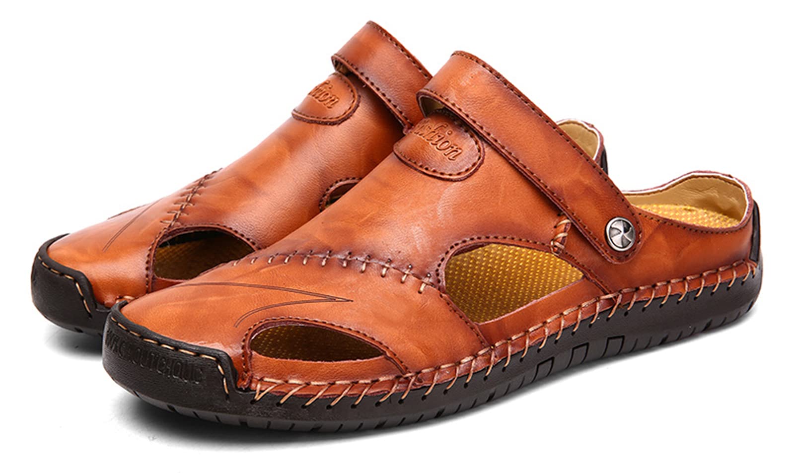 Honeystore Men's Closed-toe Hollow Sandals Plus Size Leather Shoes Casual