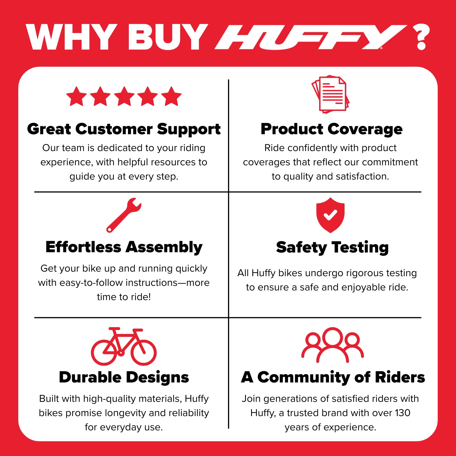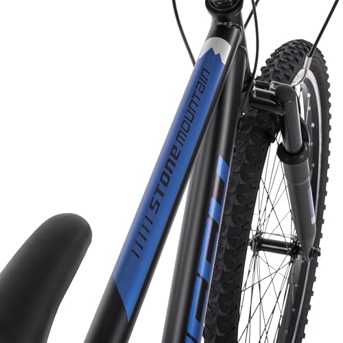 Details: From backyard paths to off-road trails, the Huffy Stone Mountain is built for riders who are ready to take on adventure. Available in 20", 24", and 26" sizes, this rugged mountain bike lineup fits a wide range of riders—ideal for kids, tweens, teens, and adults, depending on the size. The 20" Stone Mountain features 6 speeds, offering young riders a great introduction to multi-speed control. For more experienced cyclists, the 24" and 26" sizes step it up with 21-speed Shimano twist shifting—perfect for navigating hills, dirt paths, or longer rides with ease. Every model includes a front suspension fork to smooth out bumps, along with sturdy knobby tires for added grip on uneven ground. Designed for durability and comfort, each Stone Mountain is equipped with a padded seat, steel frame, and reliable braking system to keep rides controlled and comfortable. With a range of colors and sizes, there's a Stone Mountain bike built for every kind of trailblazer. Backed by Huffy’s 130+ year legacy of quality, every Stone Mountain bike includes a limited lifetime frame warranty for peace of mind. Some assembly required.