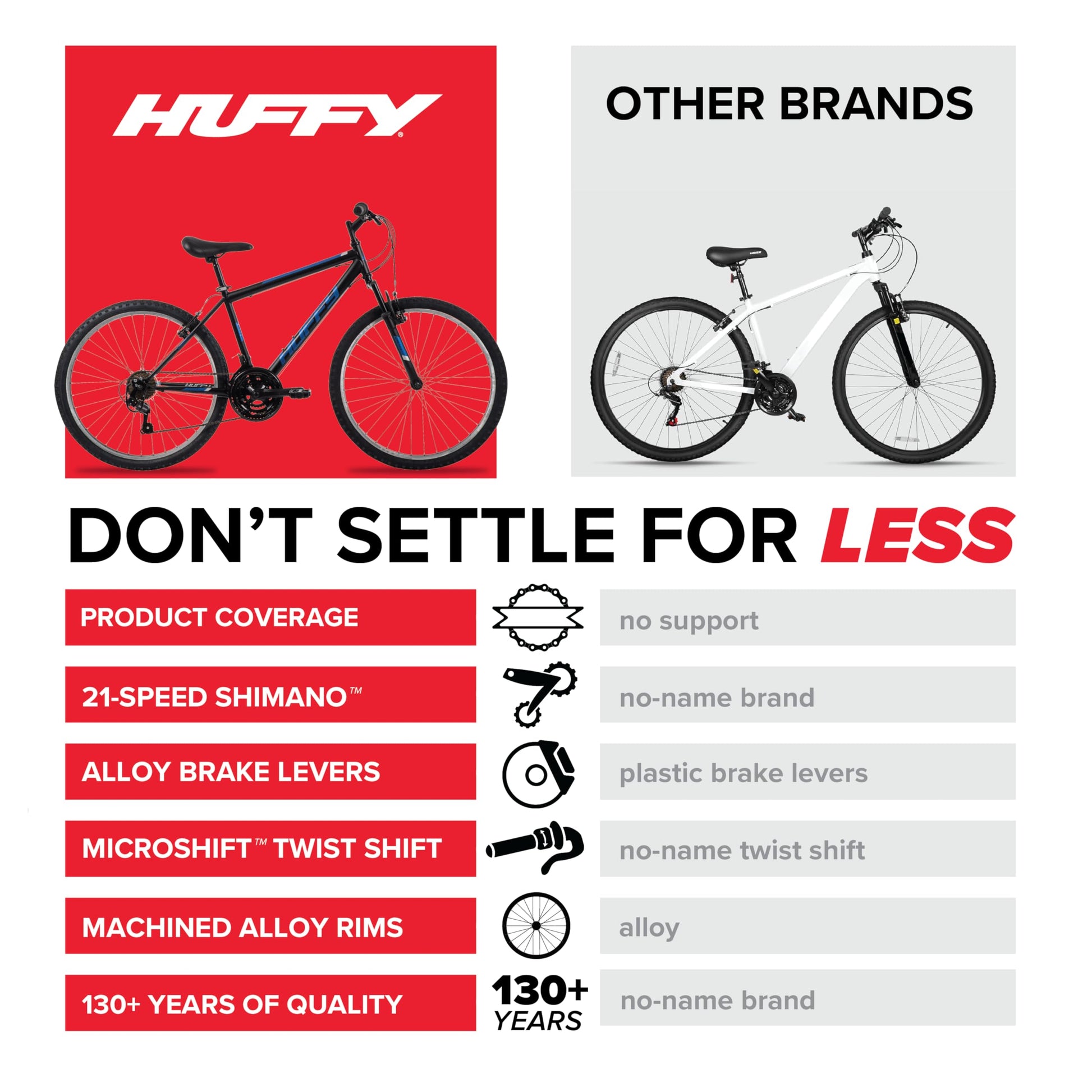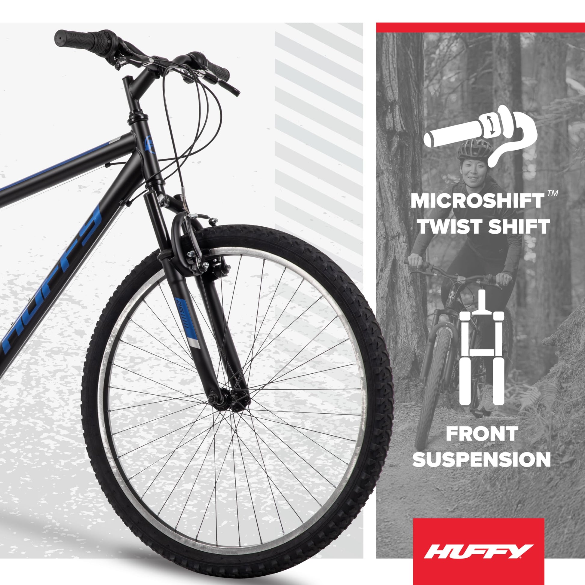 Huffy Stone Mountain Mens 26 Inch Mountain Bike, Matte Black Frame, 21-Speed Shimano Twist Shifting, Front Suspension, Comfort Saddle | 20"/24"/26" Sizes, 6-21 Speeds, Dual Suspension Available |