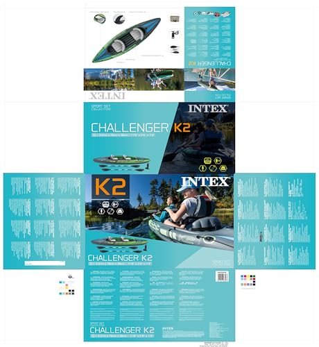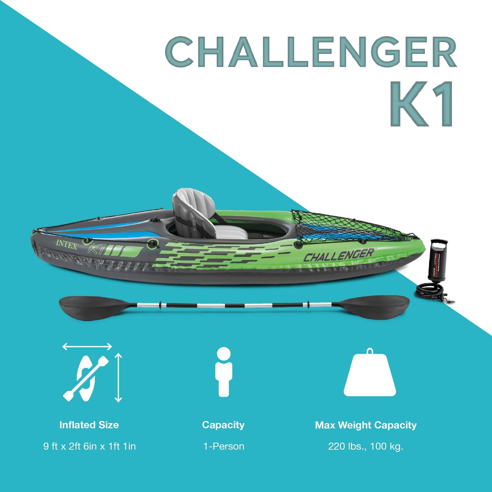 INTEX Challenger Inflatable Kayak Series: Includes Deluxe 86in Kayak Paddles and High-Output Pump – SuperStrong PVC – Adjustable Seat with Backrest – Removable Skeg – Cargo Storage Net