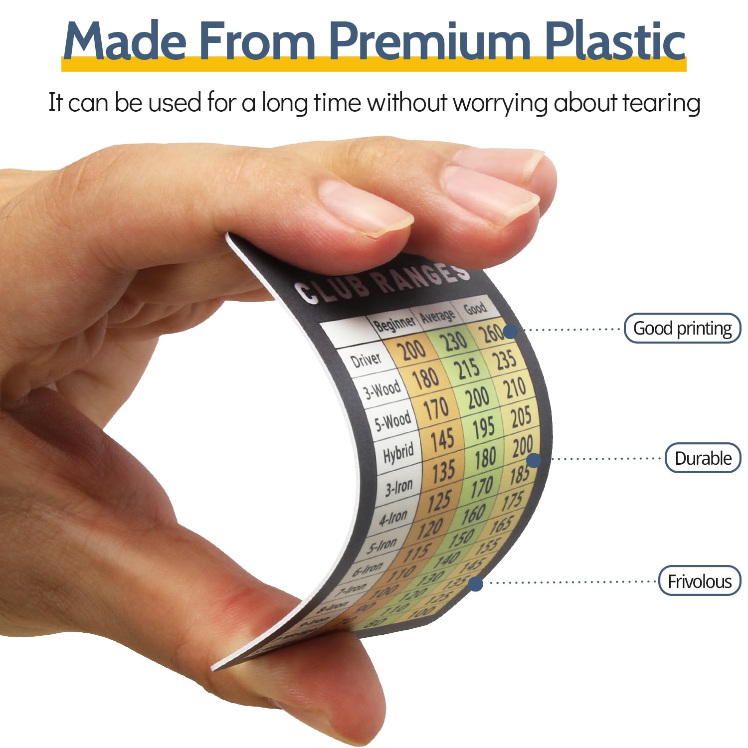 - Sturdy: Our golf cheat sheet is sturdy and made from premium plastic , which can be used for a long time without worrying about tearing.