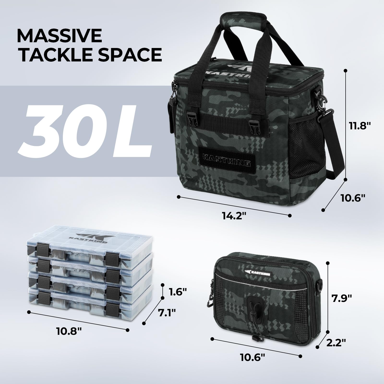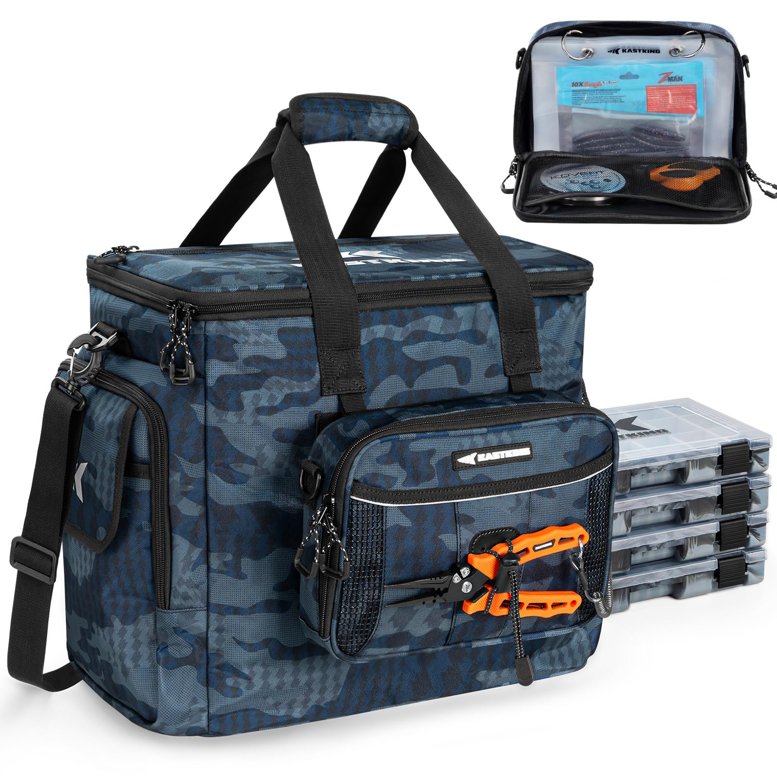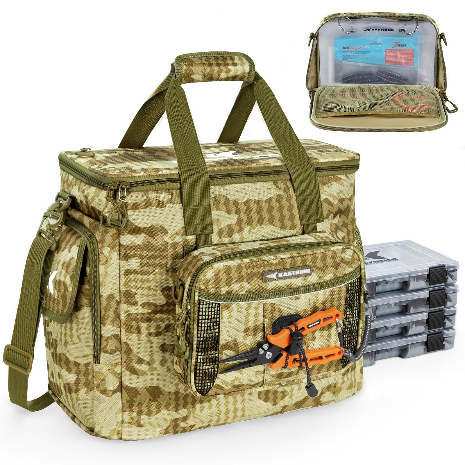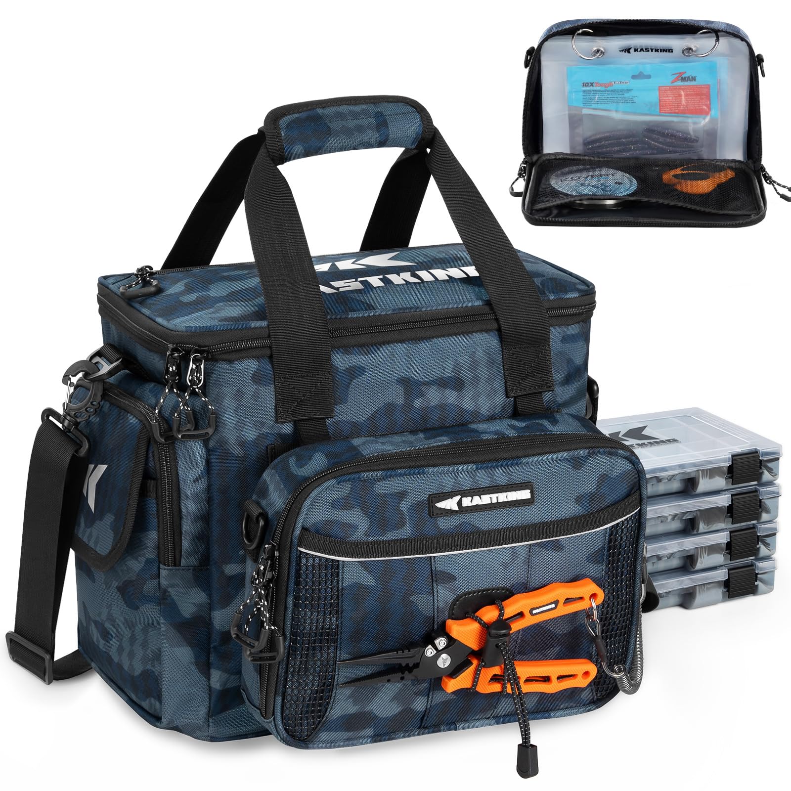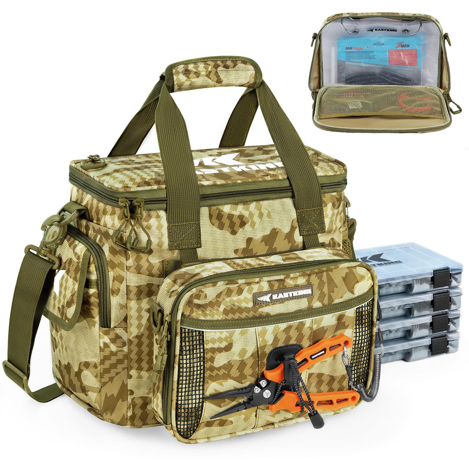 KastKing BaitSpace Fishing Tackle Bag With 4 Tackle Boxes & Removable Bait Binder, Water-Resistant Tackle Storage, Durable Fishing Gear, Adjustable Shoulder Strap