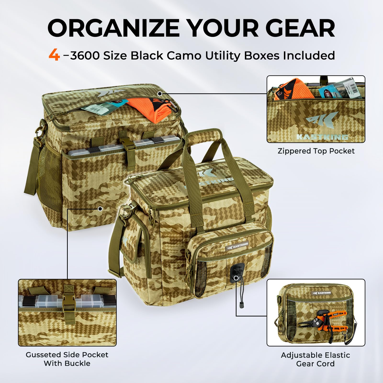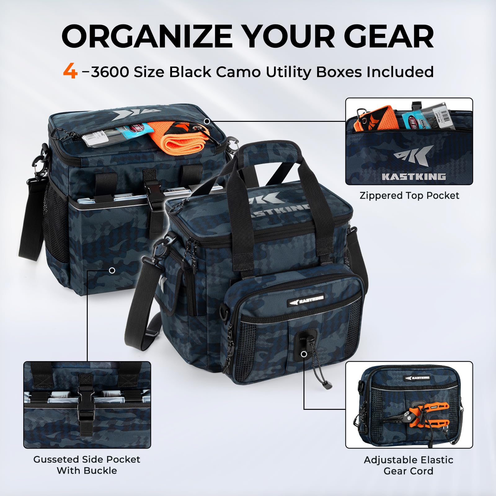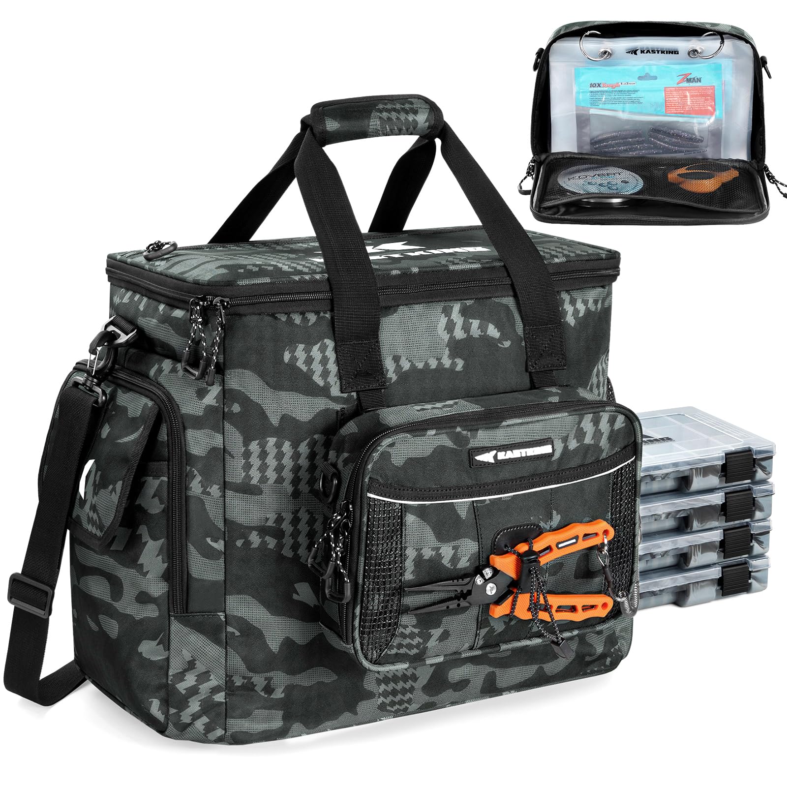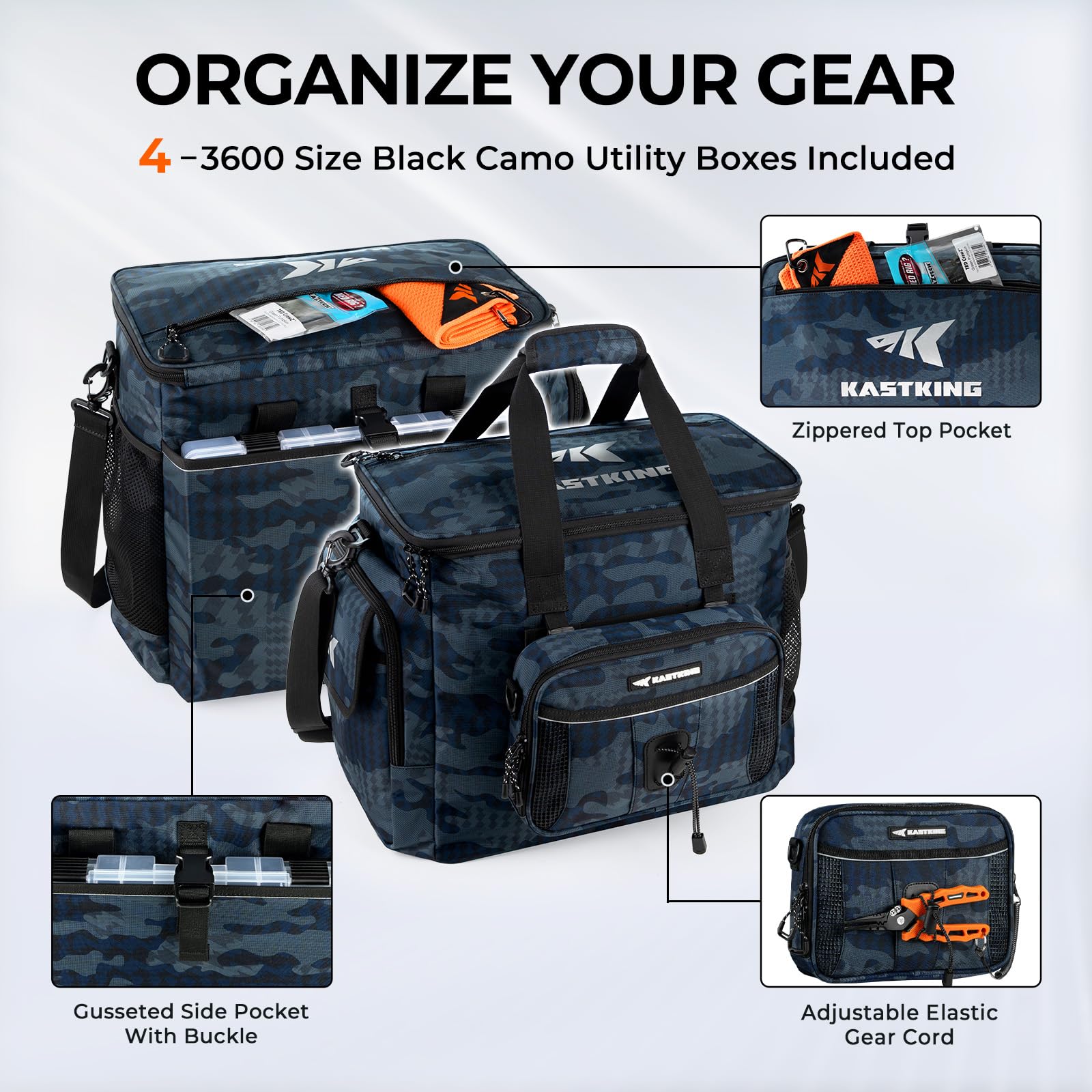 KastKing BaitSpace Fishing Tackle Bag With 4 Tackle Boxes & Removable Bait Binder, Water-Resistant Tackle Storage, Durable Fishing Gear, Adjustable Shoulder Strap