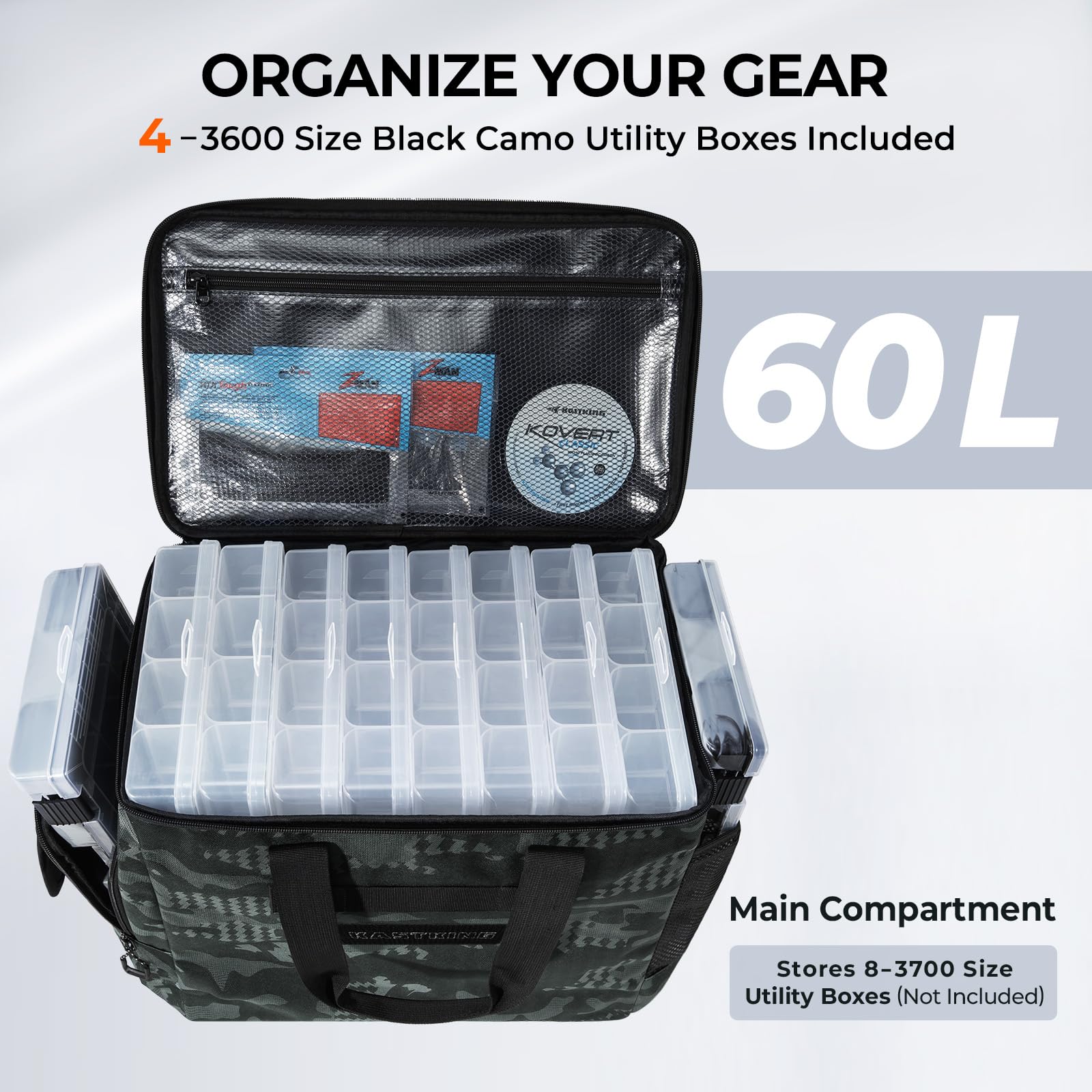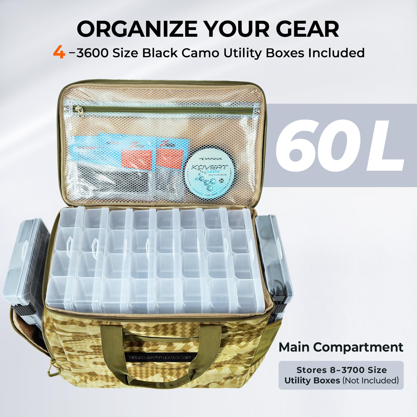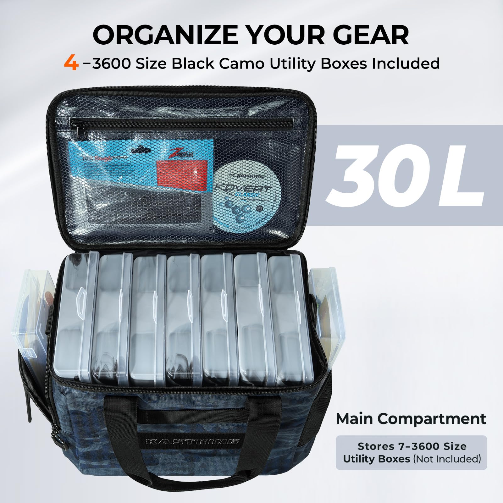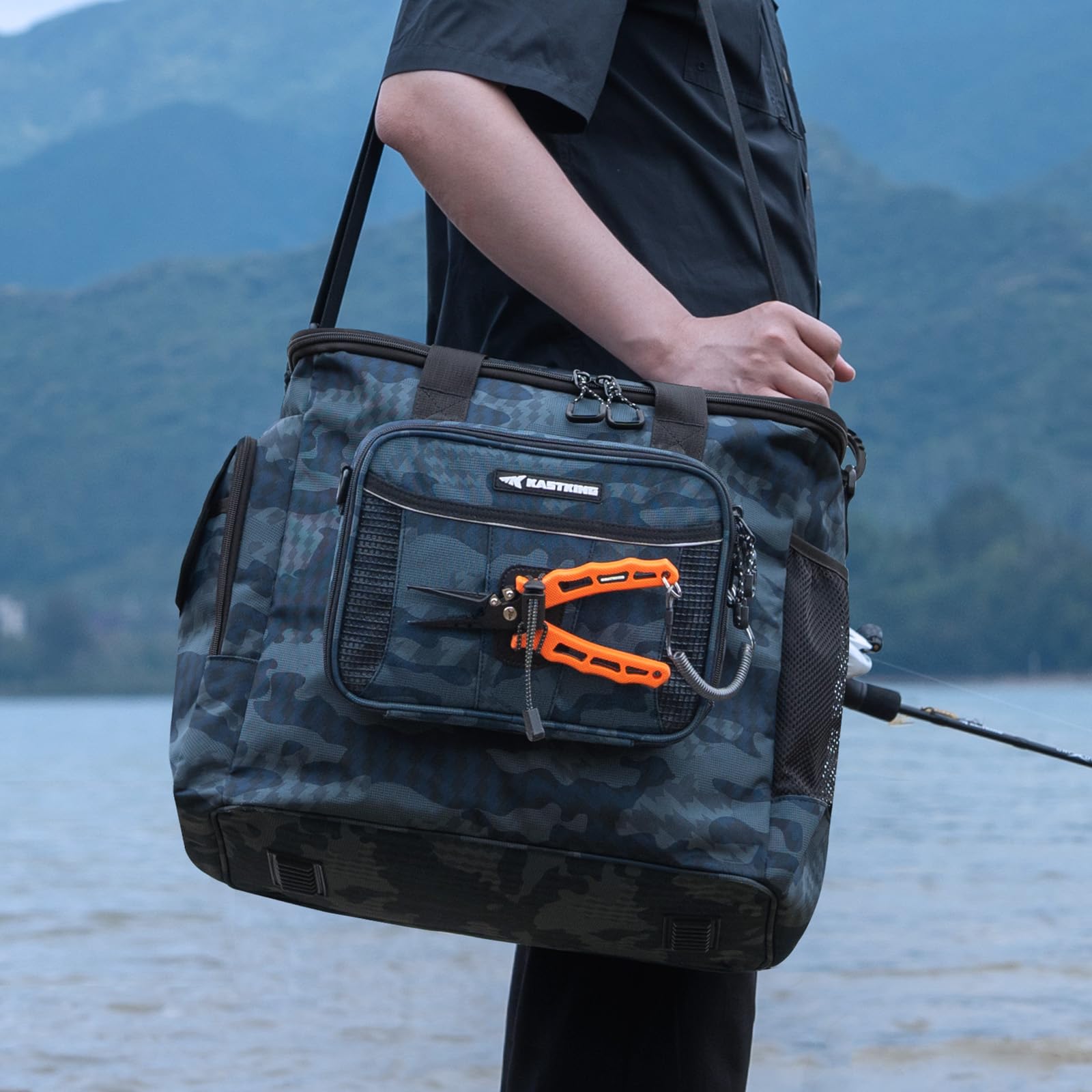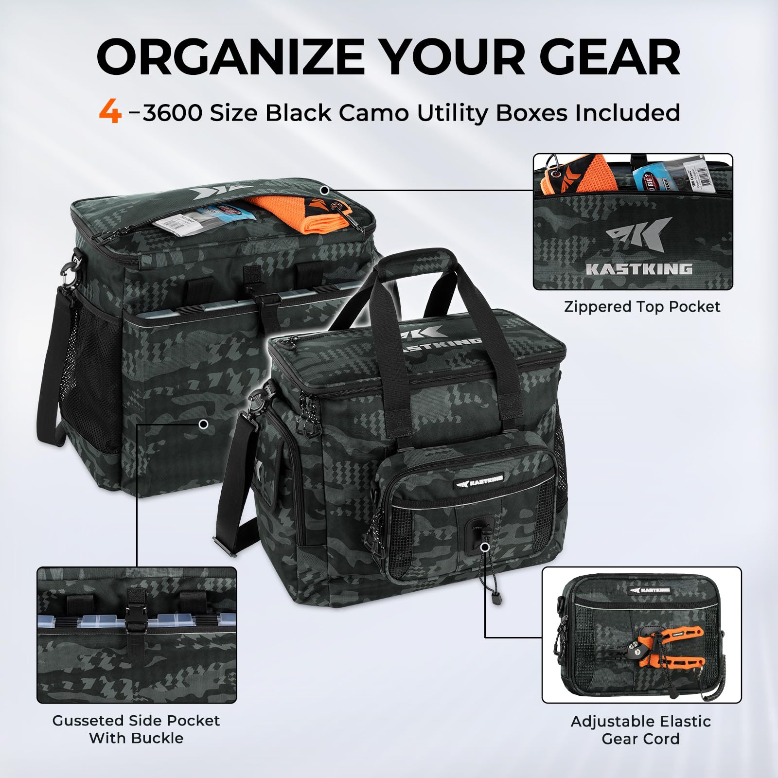 KastKing BaitSpace Fishing Tackle Bag With 4 Tackle Boxes & Removable Bait Binder, Water-Resistant Tackle Storage, Durable Fishing Gear, Adjustable Shoulder Strap