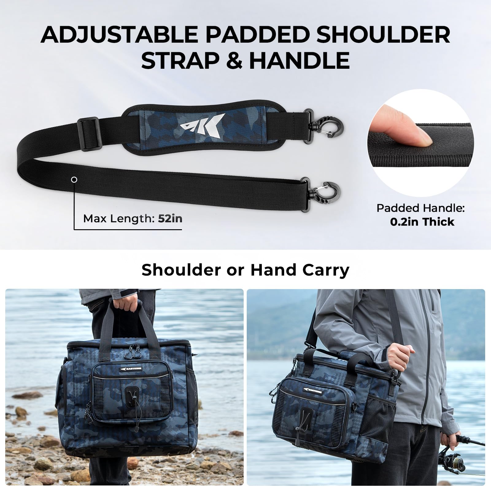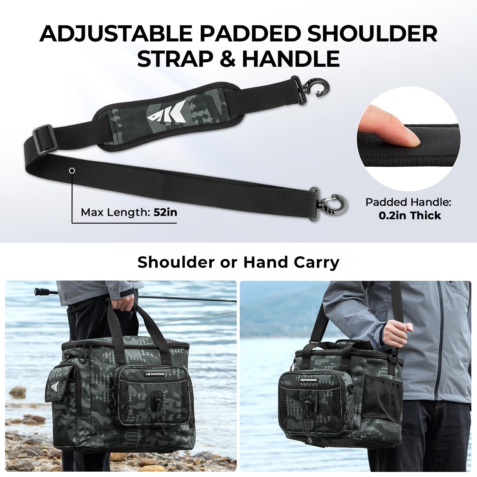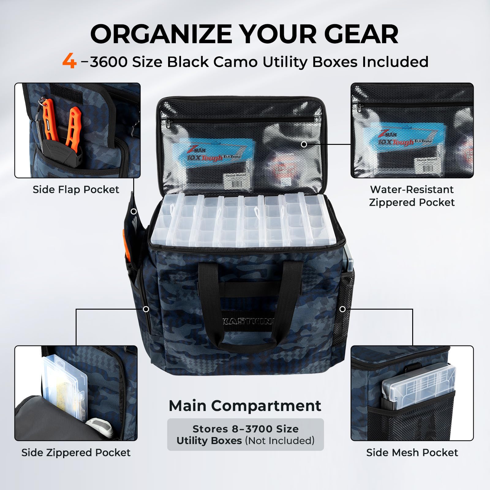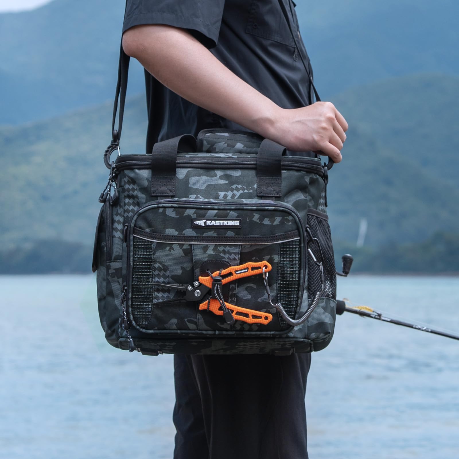 - Durable & Water-Resistant – The KastKing BaitSpace Fishing Tackle Bags are made with heavy-duty nylon oxford fabric and a waterproof PVC coating to protect your gear. An internal EPE foam layer adds extra impact resistance, while non-slip feet keep the bag stable in any fishing environment.