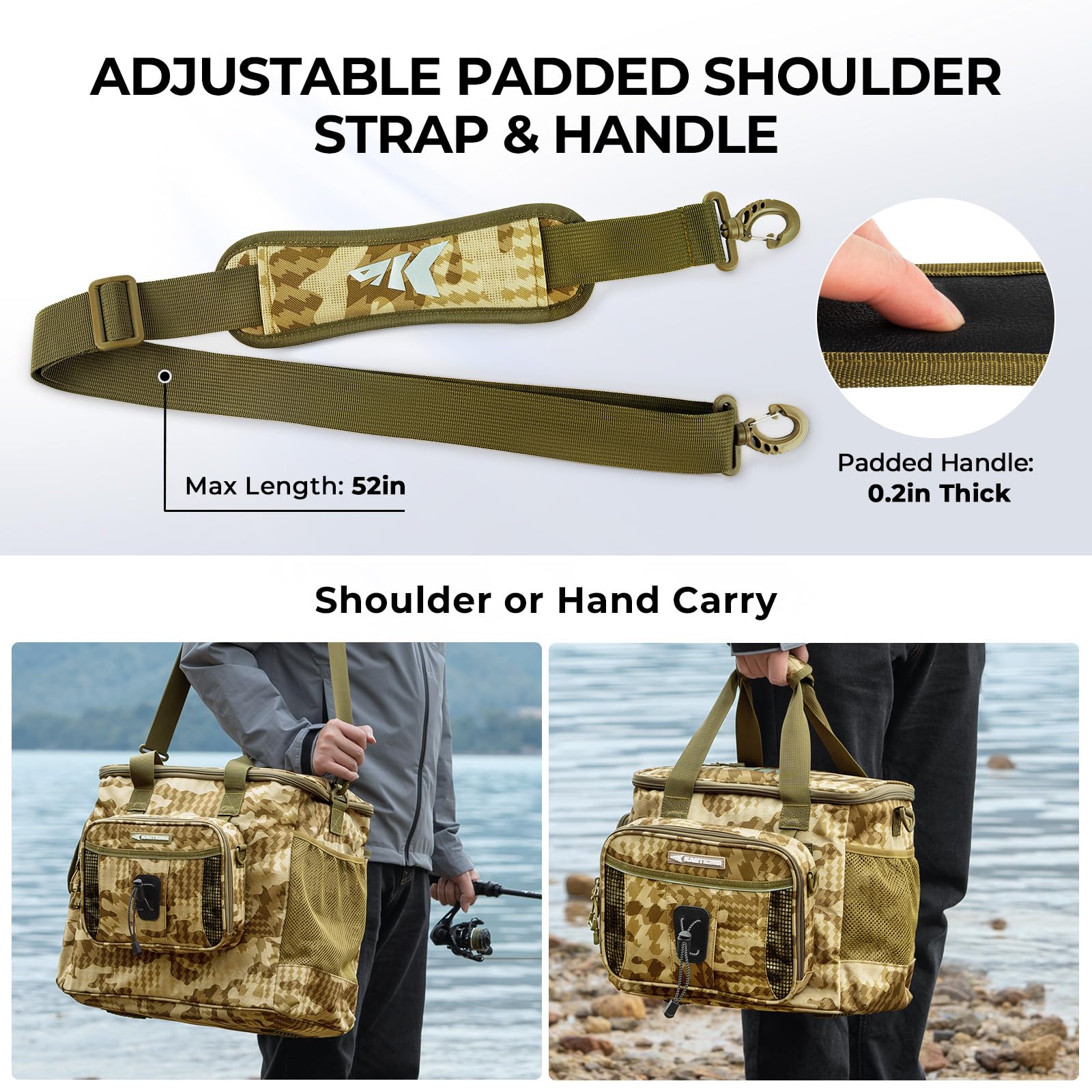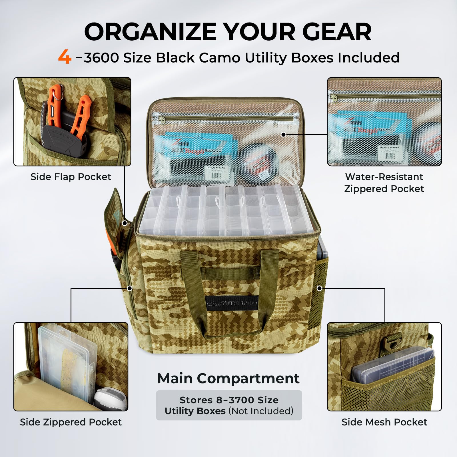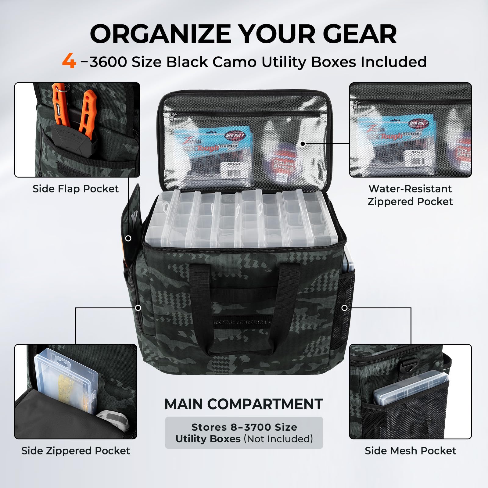 - Quick Access & Comfortable Carry – Designed for convenience, these bags have double loop zipper pulls for fast access, a padded handle, and an adjustable, removable padded shoulder strap for comfort. Zippered lid and interior pockets keep valuables secure, while multiple external pockets hold extra utility boxes and baits.