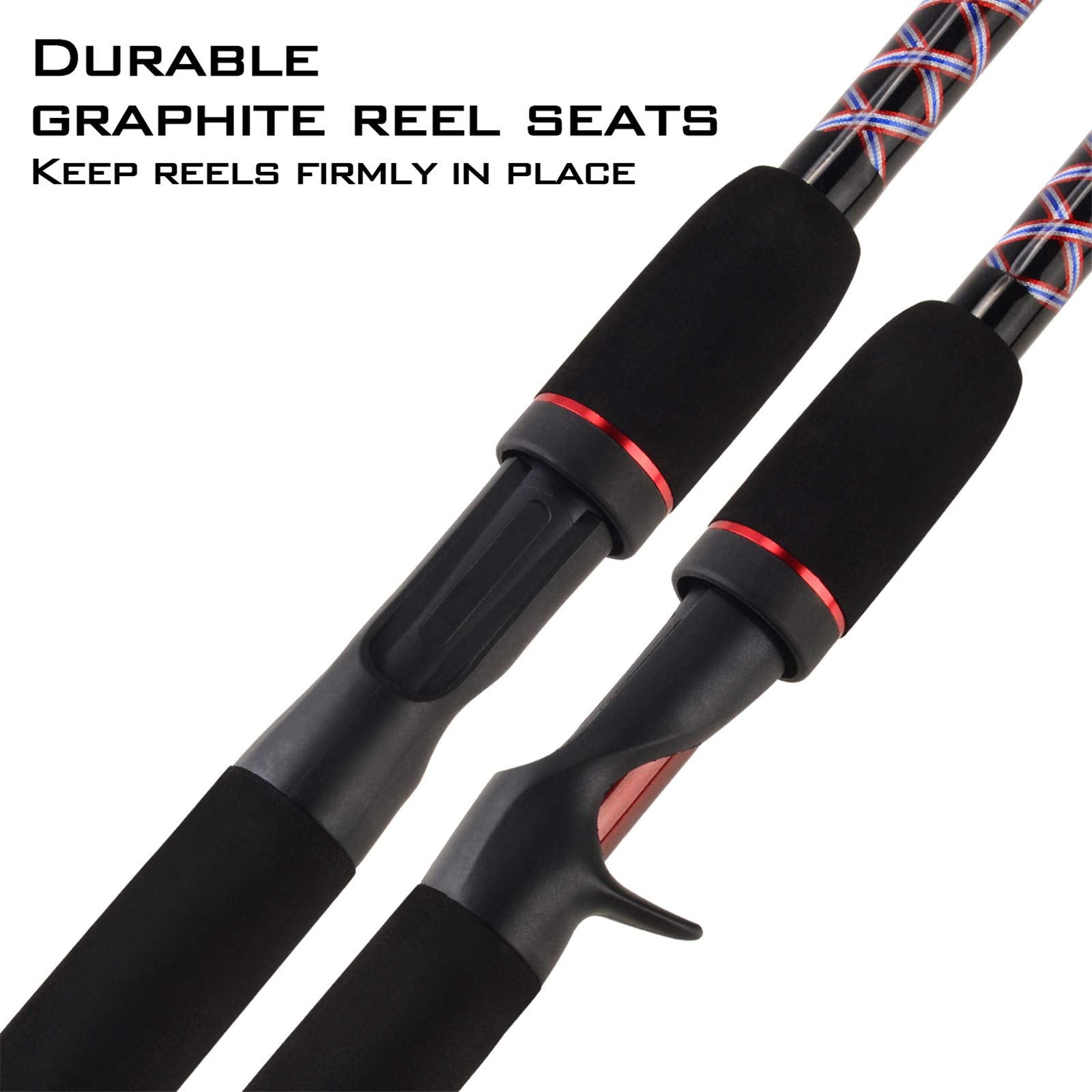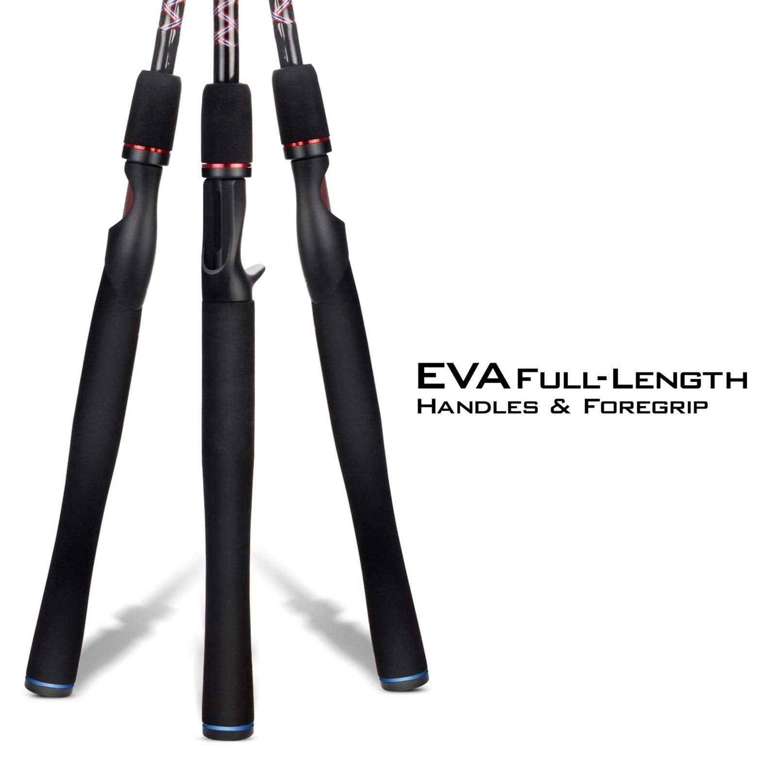 - Durable and Comfortable Full-Length Eva Handles – The full-length EVA handles on every spinning rod and baitcasting rod in the Brutus fishing rod series deliver all day long comfort and are the most durable handles made today. This special formula high-strength EVA is easy to clean, provides cushioning and doesn’t get cold or crack when the temperatures drop. Each fishing rod also uses the same EVA material in the foregrip to give you additional leverage for landing large fish.