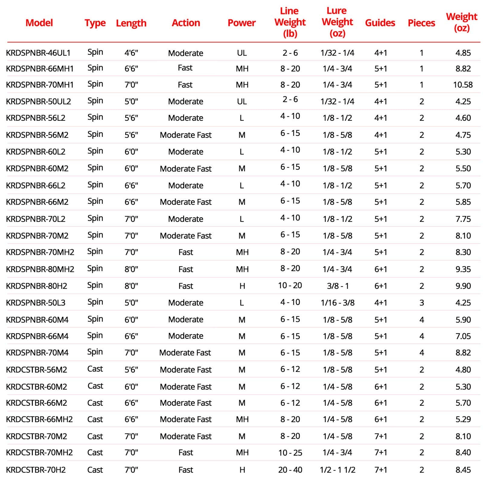 - 24 Different Spinning and Casting Rod Models – The KastKing Brutus fishing rods are available in over 20 combinations of power, action, length and number of pieces. There’s a Brutus rod designed for almost any freshwater or saltwater fishing adventure. Use it as a bass fishing rod, walleye fishing rod, salmon fishing rod, or catfishing rod. There are 3 & 4-pc models that make great travel or pack rods so you are never without an easy to pack travel rod.